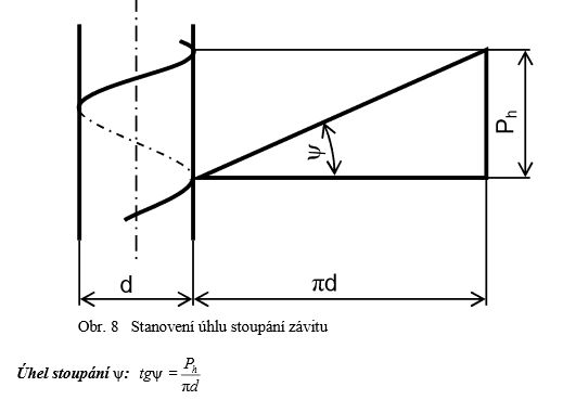 Zjednodušil jsem si původně práci a odměřil ten úhel jen graficky z obrázku z vrcholů závitů při "bokorysu". Vyšlo mi 4,35 st. , ale to je špatně, úhel stoupání se musí počítat z obvodu závitu a jeho stoupání: