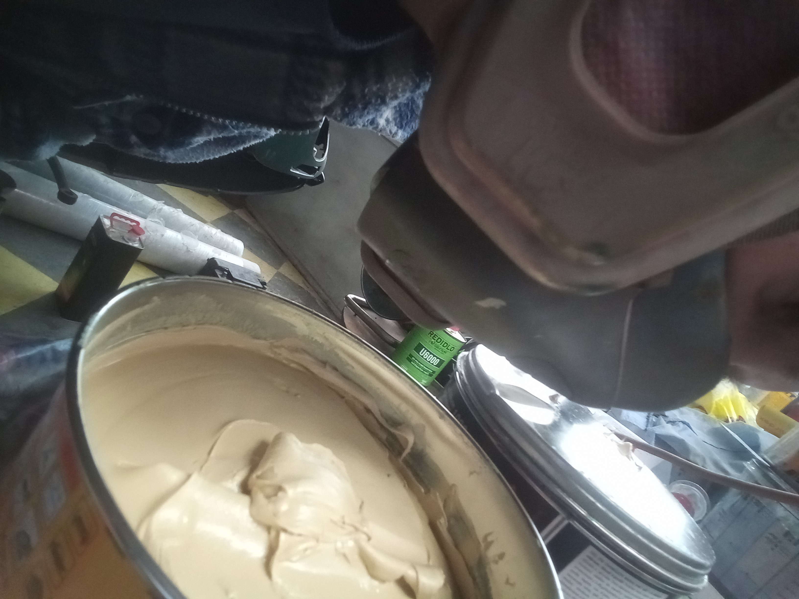 Takže sečteno, 7502+A2/6055+P2. U každý barvy je technickej list, kde je složení, a pak je potřeba dogooglit jednotlivý látky, aby se vědělo, co z toho se vlastně odpařuje a co to je zač, jestli to smrdí, a když to nejde v tý masce cejtit, tak to funguje.
