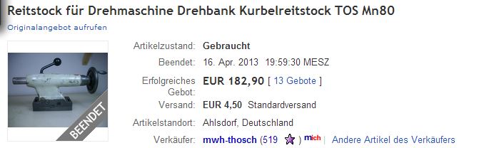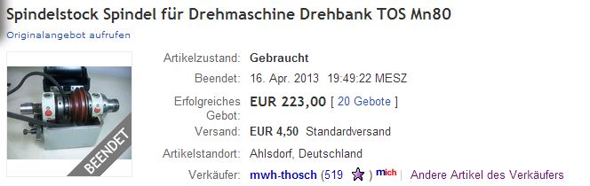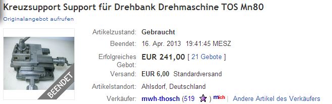 Dnes se na německé eBay.de dražily díly na MN80, zřejmě i němci znají kvalitu českých strojů