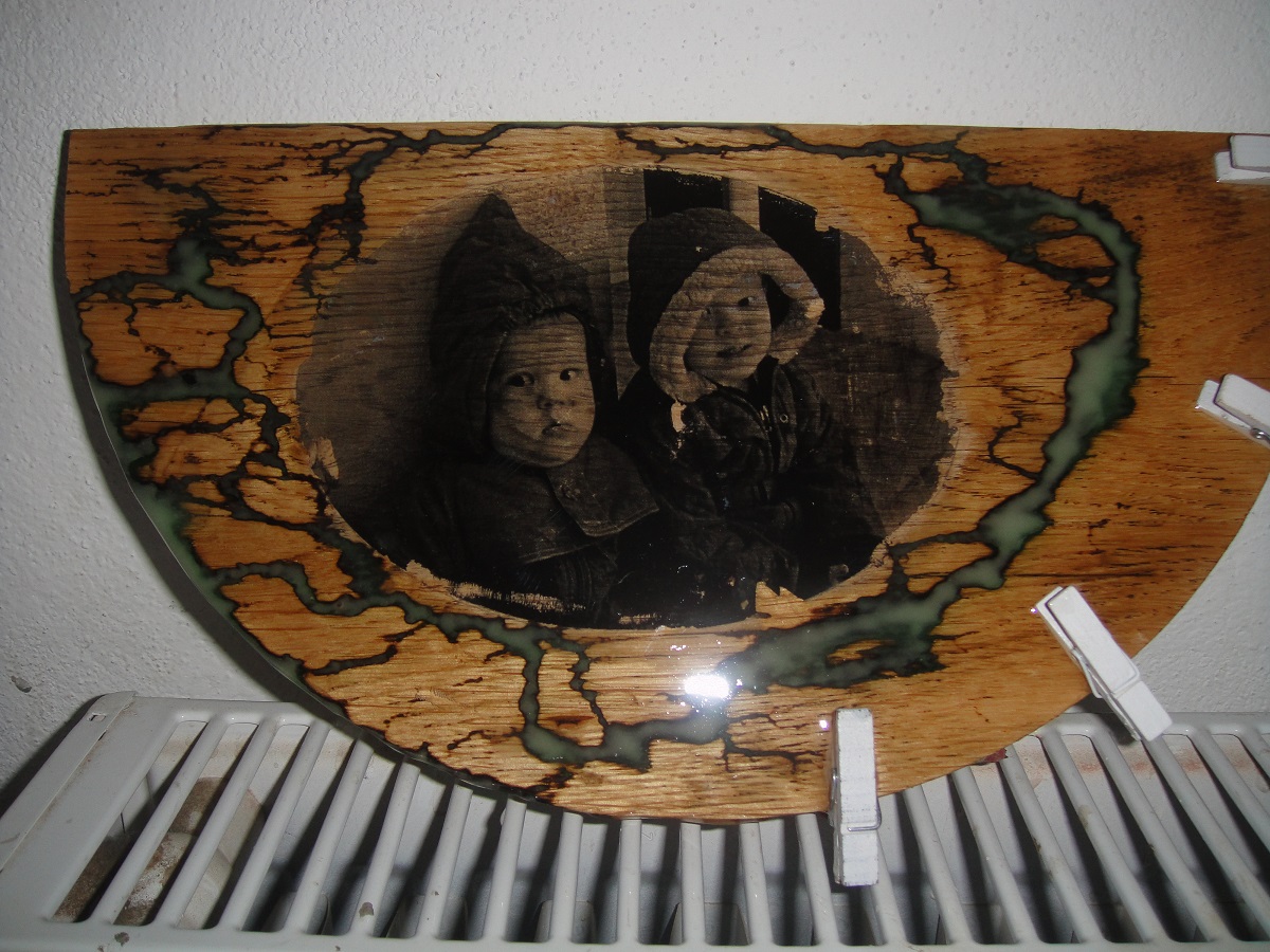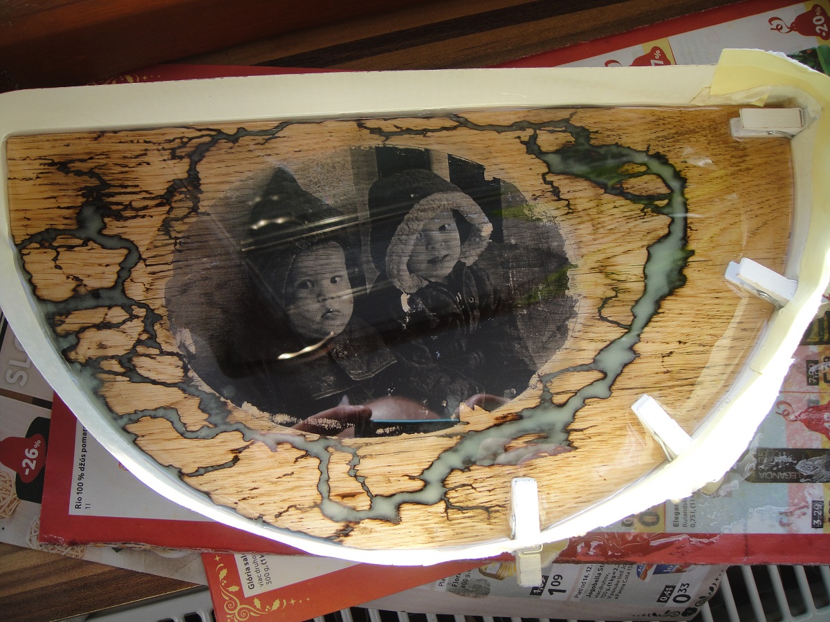 Vypaloval som to vysokym napetim, potom som tie cesticky v dreve zalial svetielkujucim epoxidom, prebrusil a zalial cirim epoxidom.