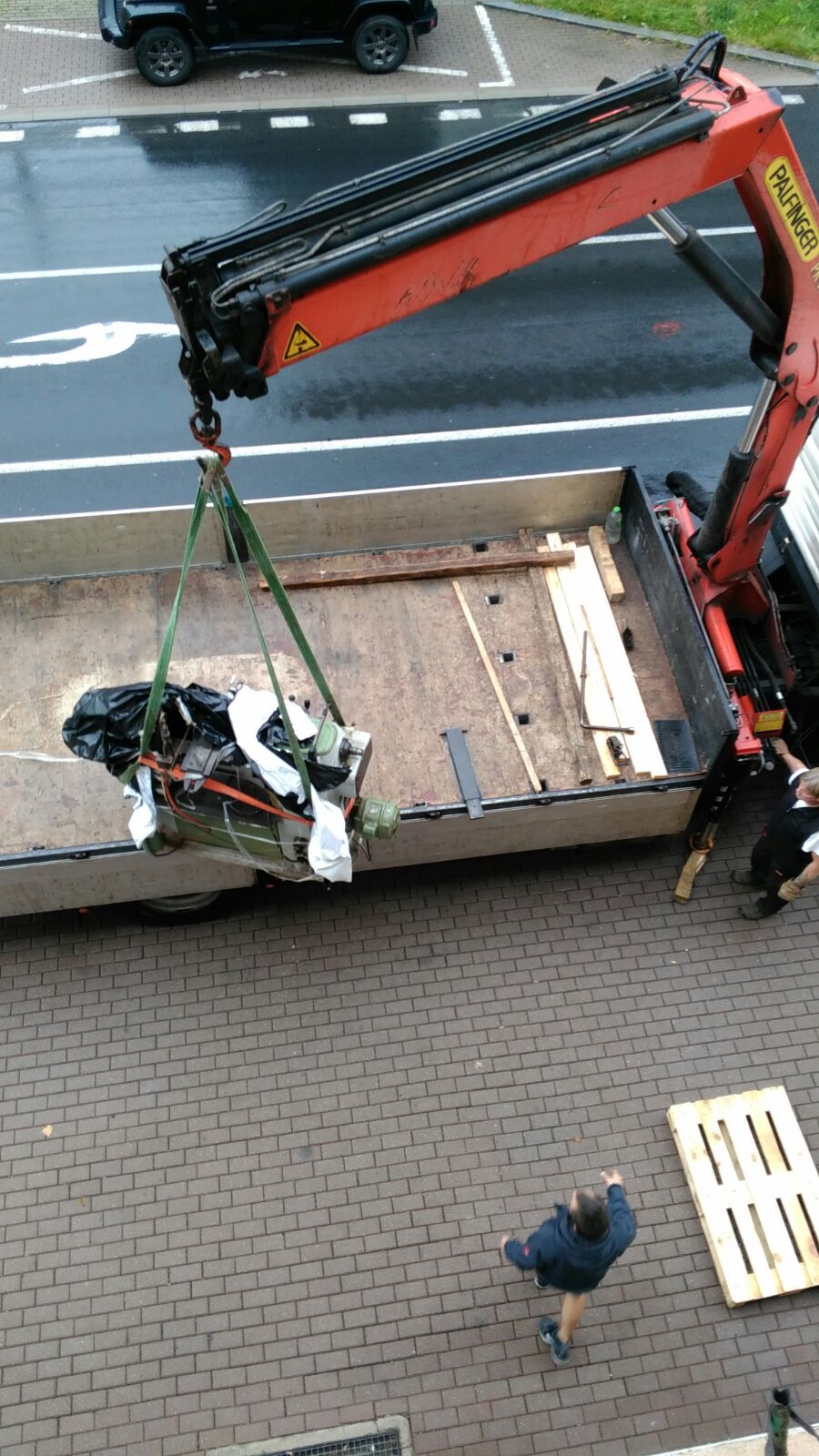 A s tím paleťákem fakt bacha, když budeš mašinu mít naloženou po délce, tak to bude docela vratký. Já sám jsem měl stěhování po rovině, takže jsem jí po válečkách dopravil na místo sám a s pomocí pajzru z válečků sundal.