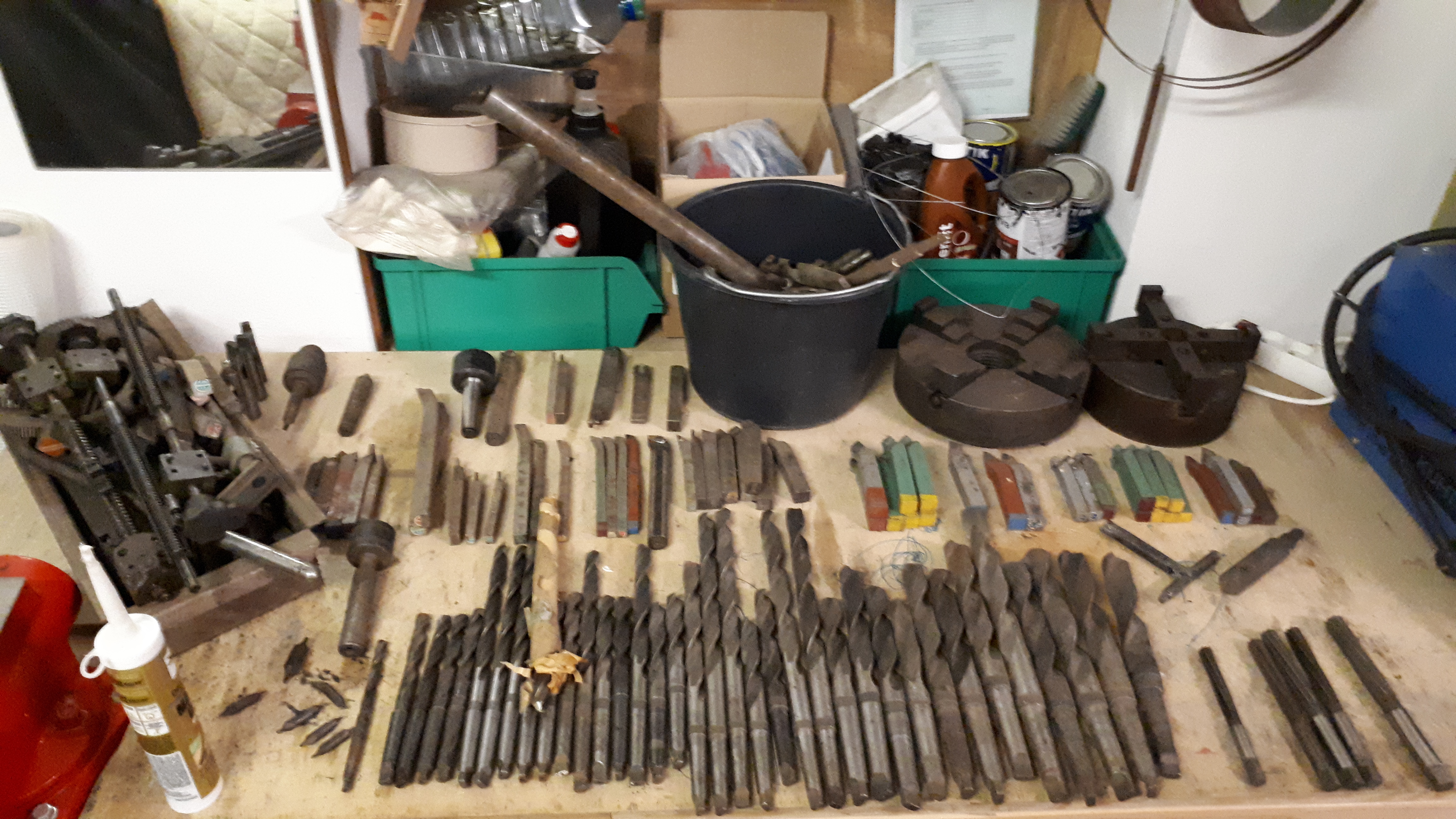 Na poslední fotce ta tyč úplně vlevo je tyčí kleštinového upínání. Nevím, jestli tento soustruh disponoval tím jednoduchým, kde se kleština utahuje rukou pomocí té tyče a nebo tím lepším, kde se tyčí vyštělovala kleština a zatahovalo se pákou. Každopádně další část toho upínání máš našroubovanou na konci vřetena soustruhu úplně vlvevo, co jsem koukal - tj. taková malý trubička. Ještě potřebuješ minimálně pouzdo na ty kleštiny a pak taky ty kleštiny samotný. Určitě se po tom poptej. Byla by to škoda, pokud je dotyčný někde v dílně má. Otázka tedy potom samozřejmě je, v jakém to pouzdro, kleštiny a dutina vřetena budou stavu.