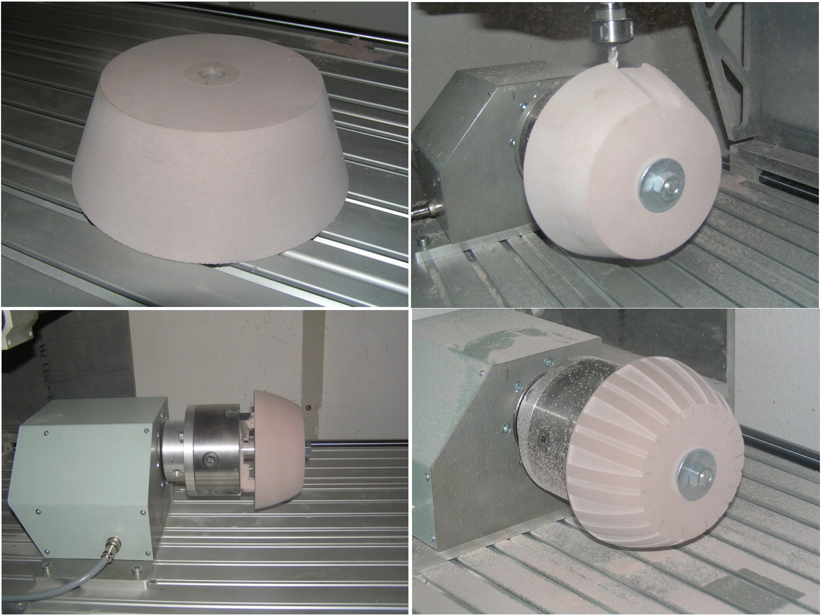 . Takhle si trochu hraju v CADu trochu v CAMu a pak jen stojím a koukám jak to jezdí.... Dál se mi podařilo bezproblémů zprovoznit pod Armote 4tou osu. Takže jsem hned vytvořil výstupní trysku. Trochu byl problém s generováním v CAMu. Poptával jsem tady pomoc, ale nikdo nepomohl tak jsem to nakonec opět vyřešil sám (sice jsem to trochu očůral, ale když to nepovím tak to nikdo nepozná). Polotovar jsem vytočil na soustruhu (kužel - abych nemusel na fréze hrubovat). Rádius už fréza udělala sama. Jel jsem 8kou frézou 12tis. otáček a max. úběr v Z byl 8mm - což je do um.dřeva pohoda. Nakonec drážky dokončené 3mm frézkou. Opět strašně rychlá výroba. Teď to jen trochu doladím šmirglíkem uvnitř drážek - pak plnič a vyleštit a hotovo. Někteří kamarádi nad tím vším trochu ohrnují nos a říkají že s CNC fézou tohle není žádný problém a že už to není modelařina, ale pouze zhmotnění něčeho virtuálního. Já jsem ale jiného názoru .....