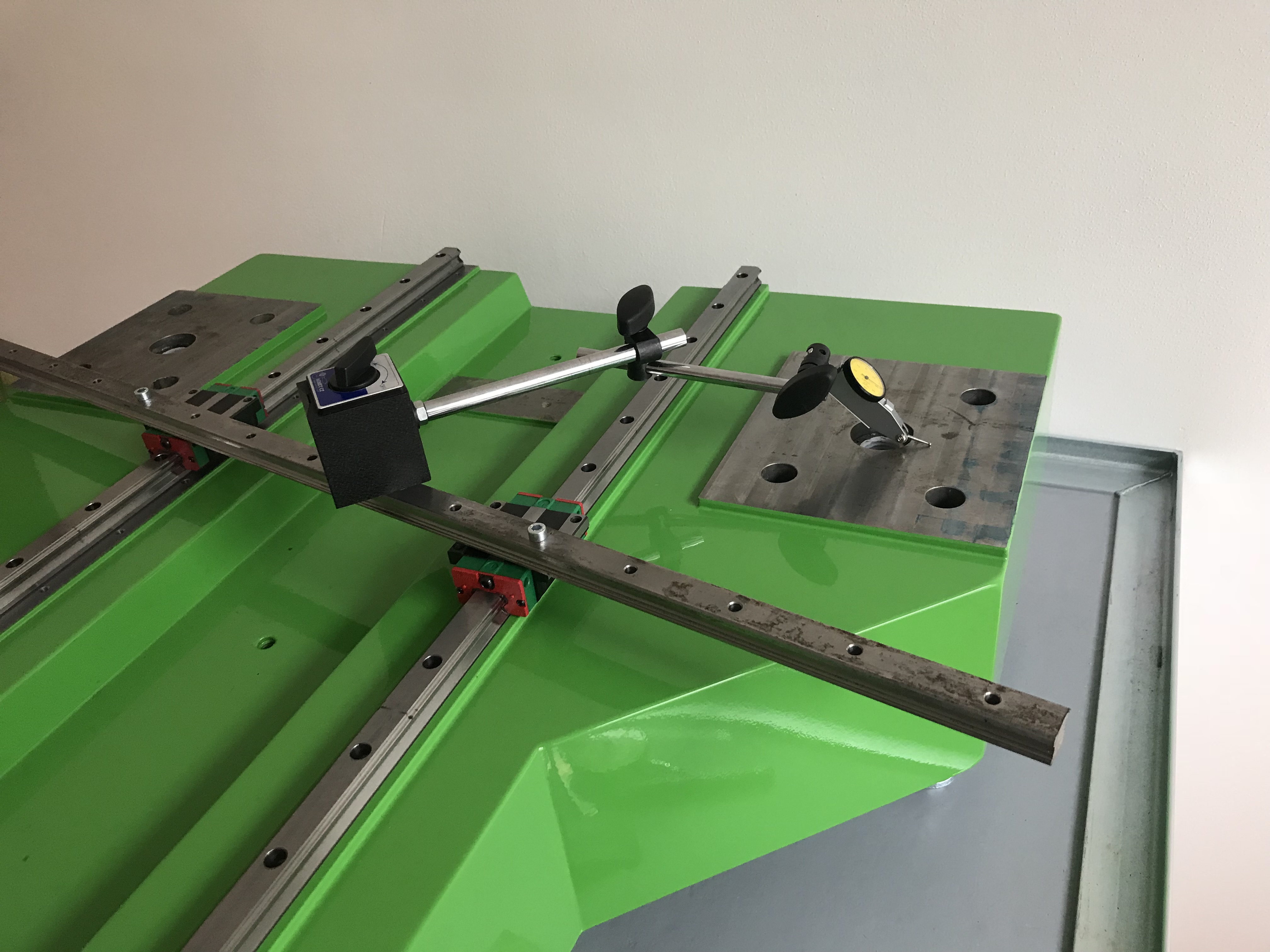 Ty hlavně potřebuješ ty plochy mit v souběhu s rovinou vozíků na těch lineárech. A tam by širší pravítko bodlo. Jinak se ti to bude dost blbě doměřovat. Pravítko na vozíky, na něm jezdec s hodinkama a doměřovat a škrabat a tušírovat a doměřovat a škrabat a.....