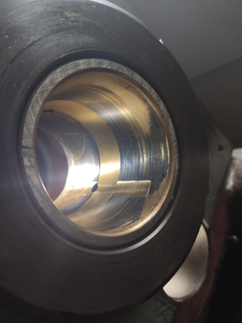 Jinak mně přijde, že teď stejně s kontrolním trnem změřím kulový - moje lože je tak jeté, že to nemá smysl. Myslel jsem, že aspoň zadní plocha lože, které jsem se chtěl chytnout, je skoro nejetá, ale je tam 5 setin lavor.