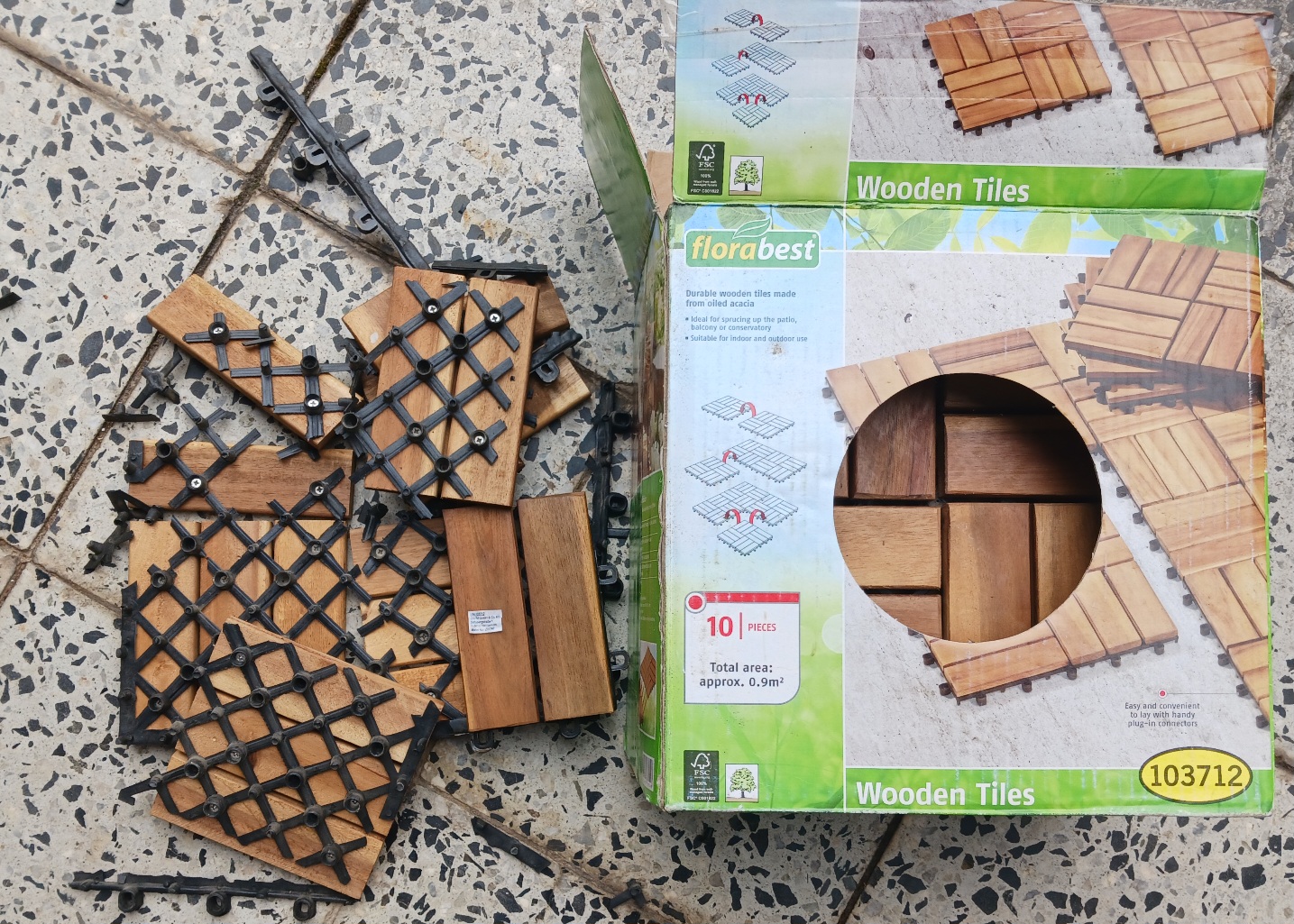 Koupil jsem na burze dřevěné dlaždice. Původně asi Lidl. Při vyndávání z originál krabice se vlastní váhou rozpadly. Vyrobit takový ekologický plast musí být umění . Budu mit čím topit
