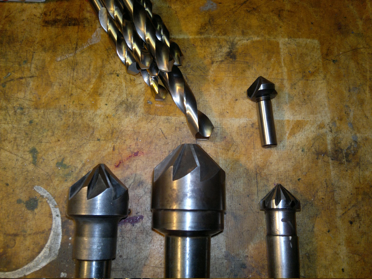 Venku pršelo a tak se brousilo. Záhlubníky, pár vrtáků a jestě jsem přešteloval brusku na broušení fréz.