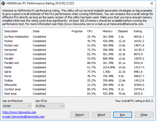 Doma na i7-6700K jsem si spustil HSMWorks test z