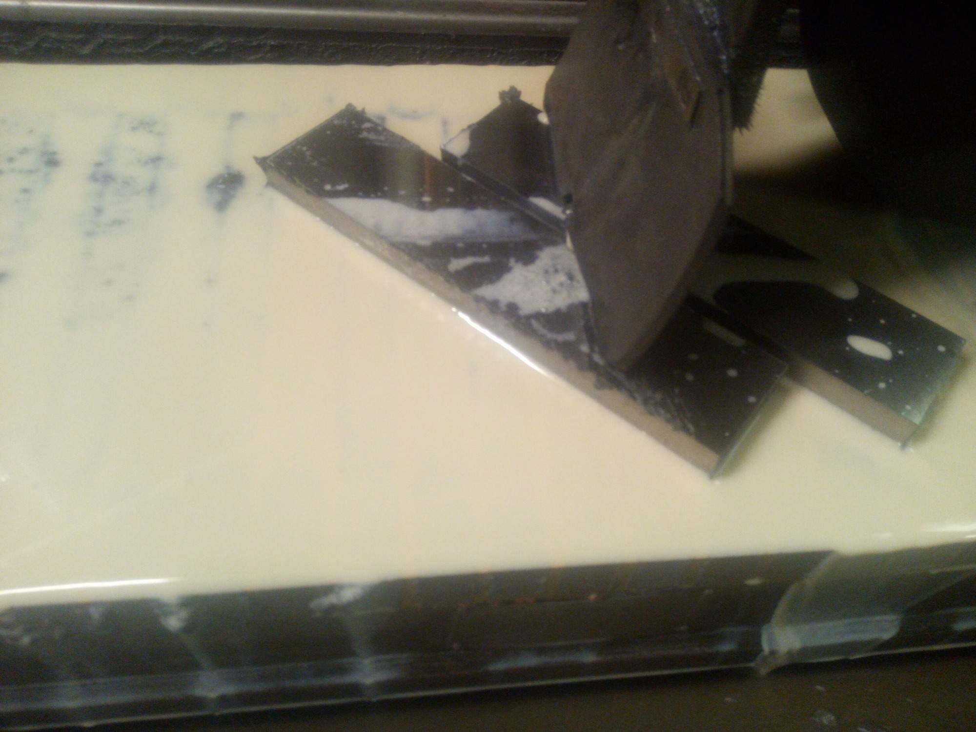 Zrobil jsem si kostku na orovnávání. Je takhle schválně, abych mohl orovnat po otočení té kostky o 90 stupňů bok kotouče. Uvnitř MK1.