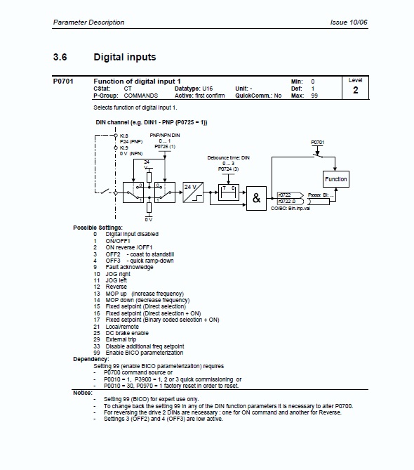 ono se tam ještě pomocí P0725 (přístupný odněkud ????) dá měnit jestli ten vstup reaguje na + nebo 0, přepínají se ale všechny vstupy najednou, takže v tom chyba nebude, ale ten vstup asi bude trochu složitější