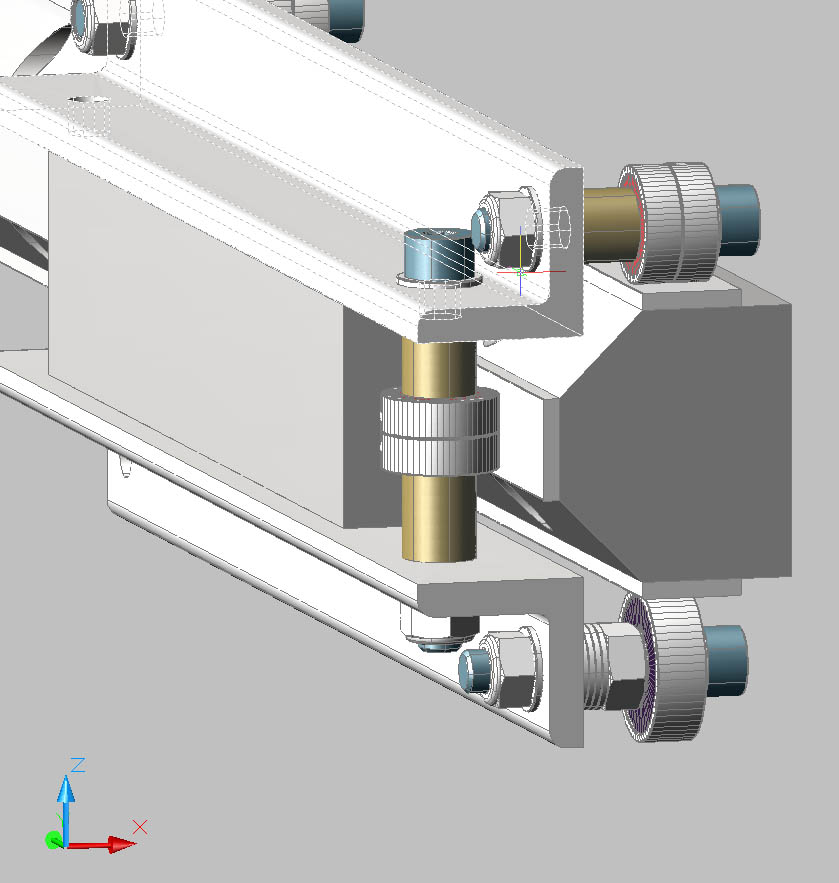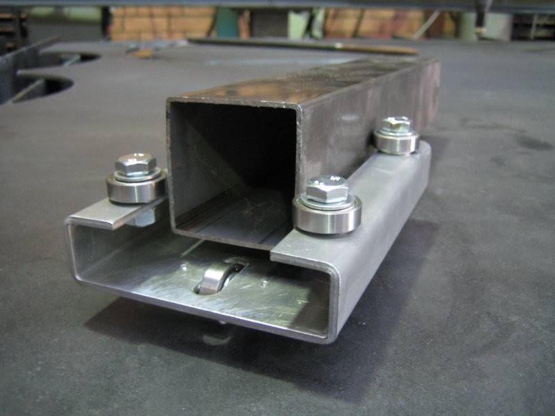 X, Z úhelník na úhelník, Y jekl a 2 ložiska nahoře, 2 ložiska dole a 2 ložiska ze strany, stranový se seřizujou, dolní jenom utahujou na potřebnou lehkost pojezdu.
