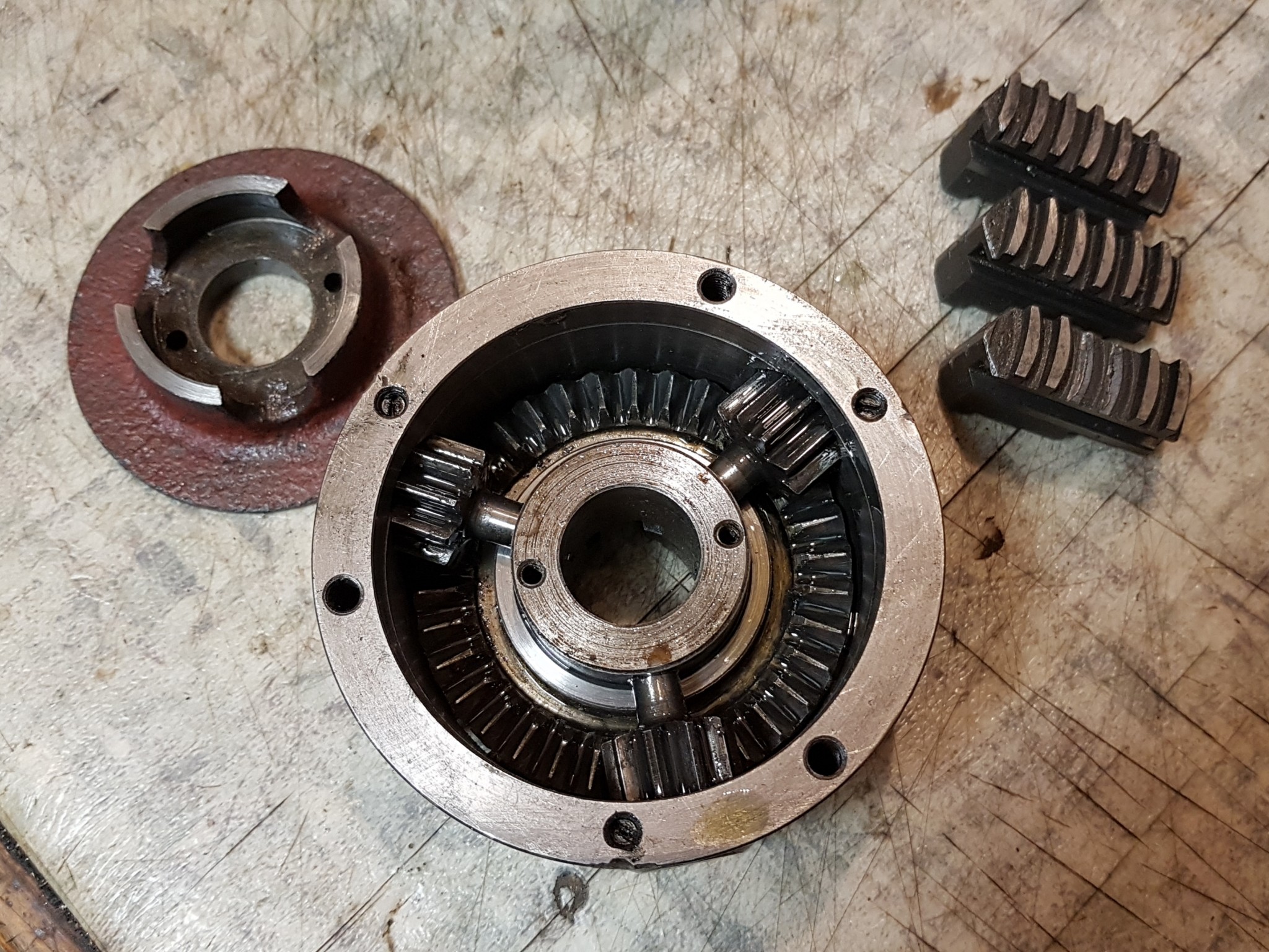 ..ale zase zaseklá univerzálka už je dole (přišel pan Tone, zkušený soustružník v důchodu, majzl do toho párkrát kladivem a bylo :roll: ). Pokud by někomu přebývala pakna č. 3 pro TOS 100/3 v zachovalejším stavu, dejte prosím vědět.