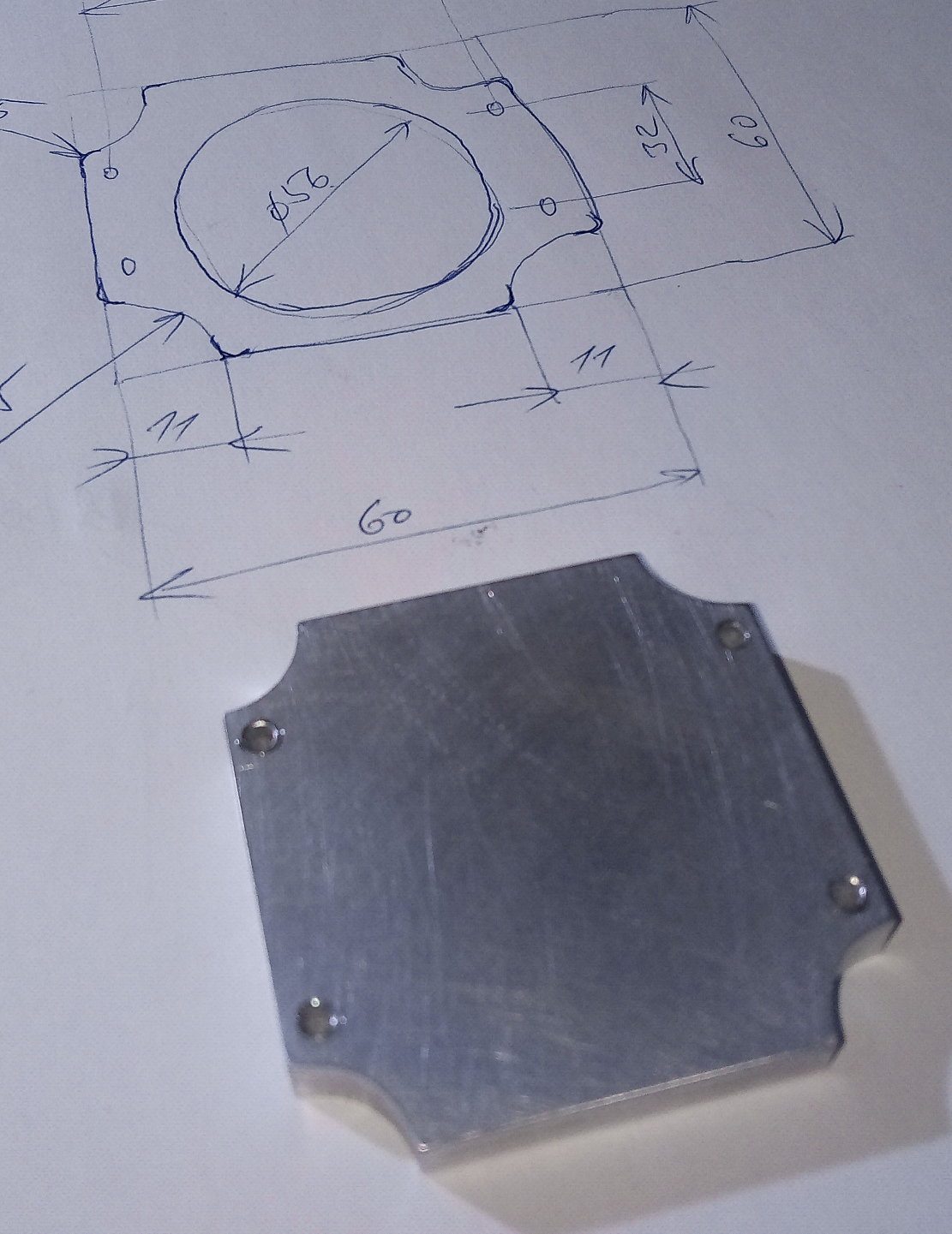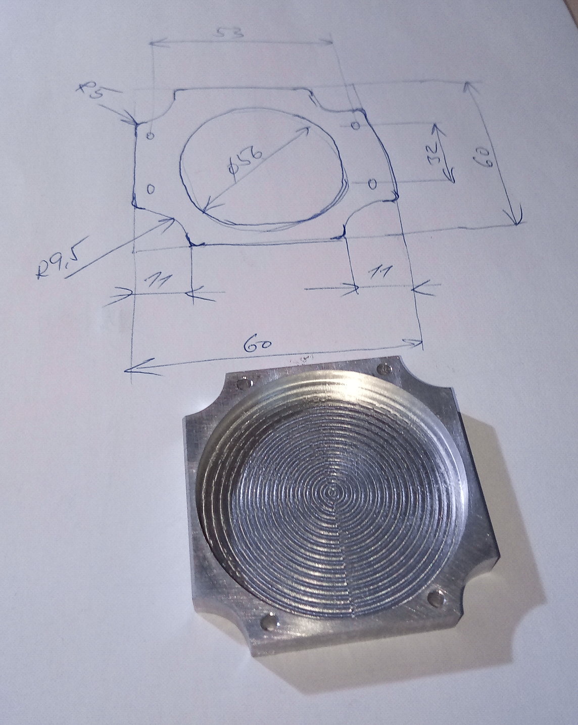 Tady je výsledek (zadní čelo closed-loop motoru nedávno zakoupeného zde na fóru). V zásadě si to netroufám nazvat frézováním ale přesto jsem na výsledek náležitě pyšný....zvláště rozměrově všechno sedlo jedna báseň.