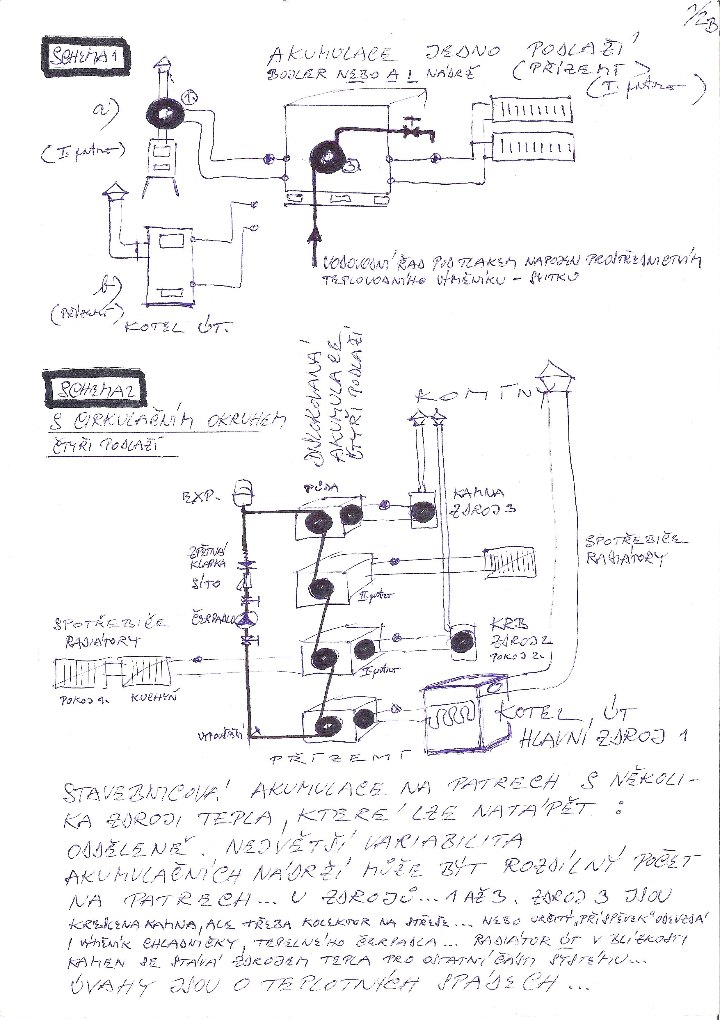 Nejsem žádný topenář, ale řekl bych, že podobný problém jsem řešil loni s druhým třícesťákem na výstupu do topení od aku nádrže (mám dvouokruhovou oběhovku - kotel/nádrž - nádrž/topení). Pak mi jeden praktik poradil abych spínal čerpadlo termostatem (stačí příložný - nastavený na cca 40 st) a termostat umístil co nejblíže vstupu do aku nádrže (u vás barelu). Když pak zatopím tak termostat spíná čerpadlo v domovní oběhovce a cykluje to v několikaminutových intervalech, když se v nádrži vytvoří malá vrstva teplé vody, tak pak už čerpadlo běží trvale. Před touhle úpravou to dělalo stejné hrůzy - kotel za chvíli vařil a do nádrže ani baráku nešlo nic, pomohlo jen vyřadit třícesťák za kotlem. Můžete to opatrně zkusit, ale otázkou je co s tím výměníkem, který máte vřazený v serii s motorem, kam až se dostává horká voda bez zapnutého čerpadla. Výměník je vlastně samostatný zdroj tepla, proč ho máte takto připojený?magi píše:Barel propojený s motorem, všechna důležitá místa osazena snímači teplot, zapojený datalogger, zřízeno improvizované měřící středisko, osazen i sportovní filtr ze Škody 100