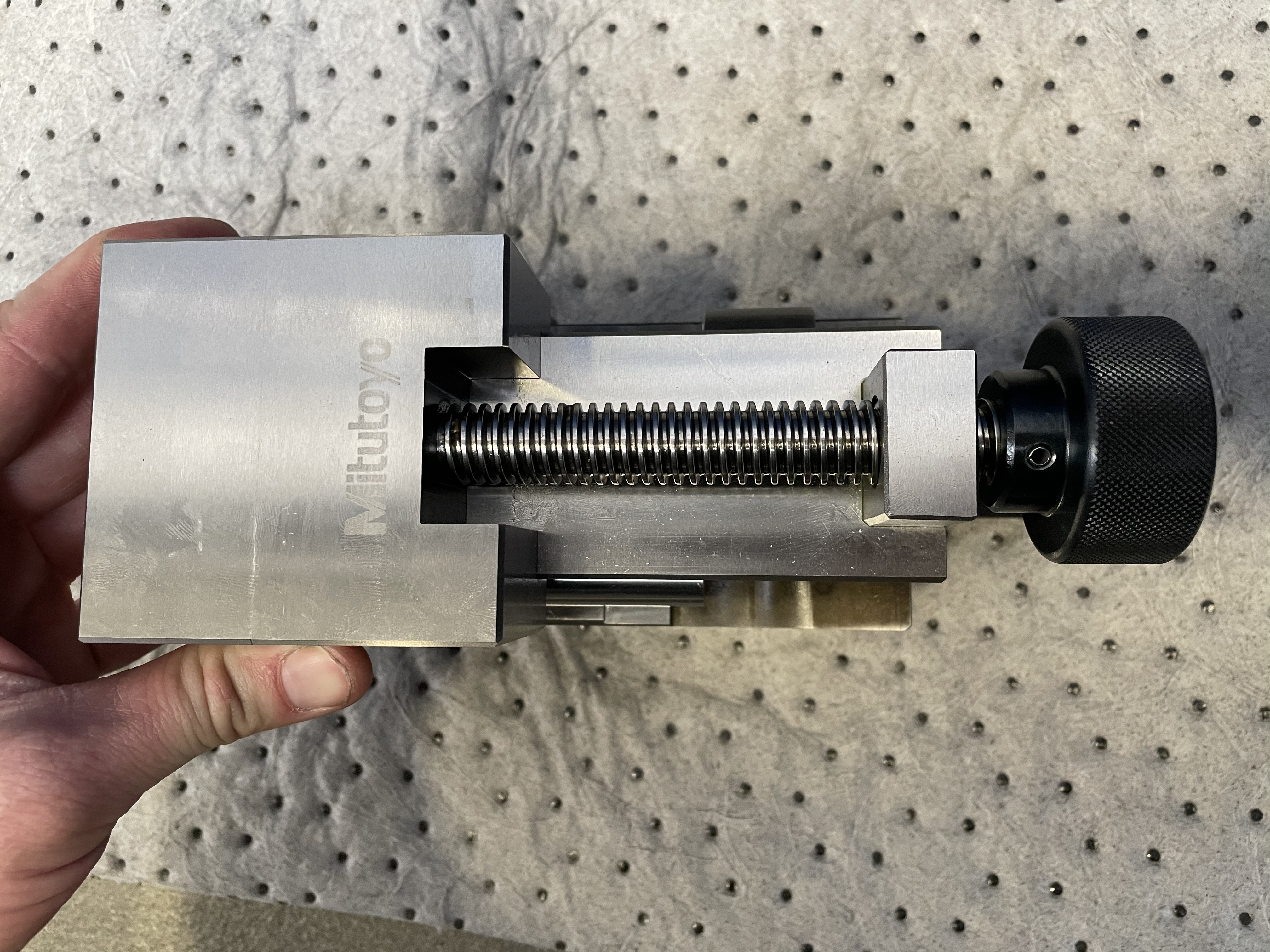 Ešte k tomu vyvažovaniu, jednoduchá rada keď nie je vybavenie. Brúska a jej stôl je vyvážený, takže na stôl sa položia dve brúsené prizmy, na tie sa dá vyvažovací tŕň s prírubou a kotúčom a vyvažuje sa. Po vyvážení prizmy späť do skrine.