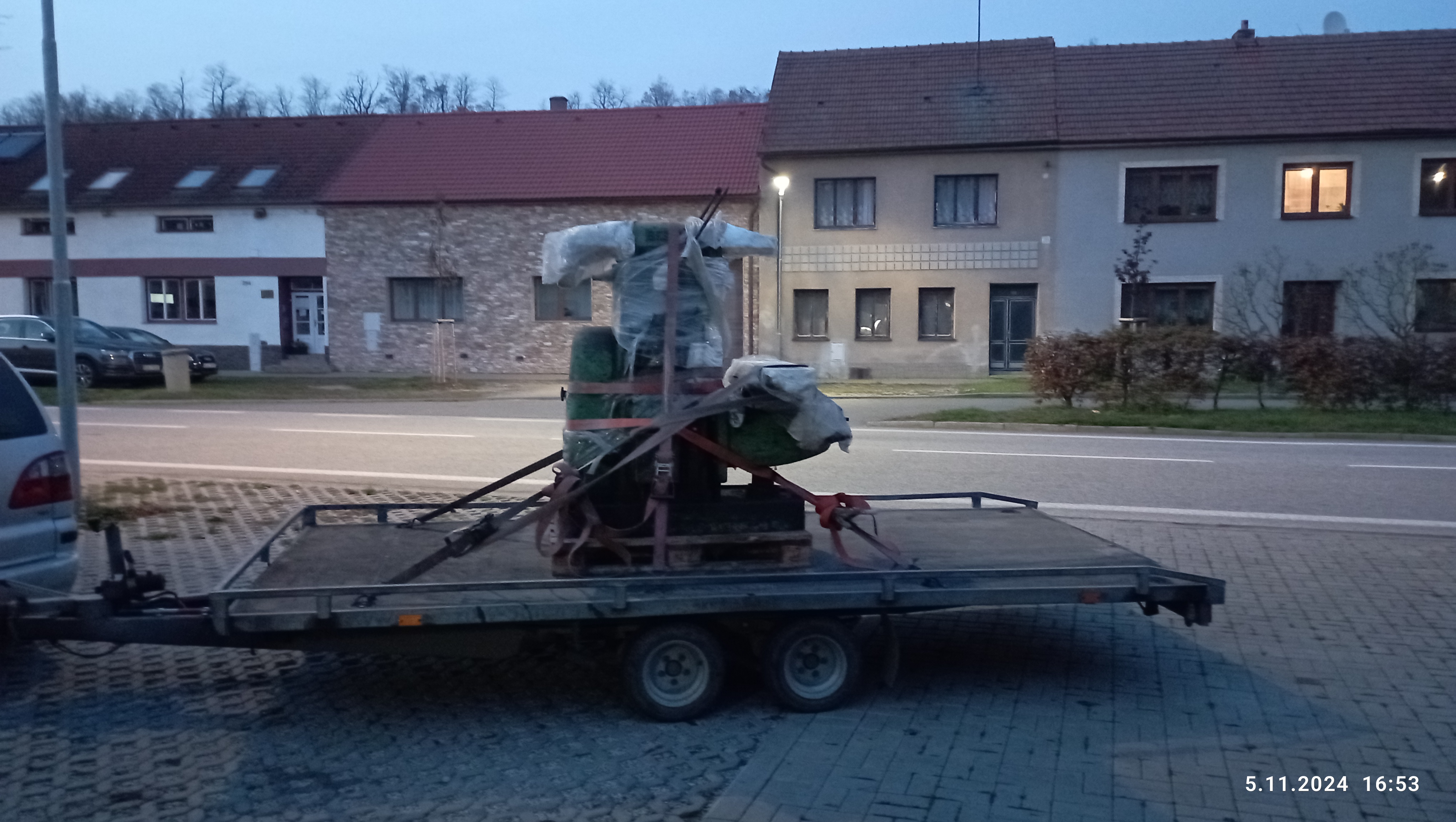 Jiří M píše: 7. 10. 2024, 8:04 Odhaduji rozměr 800x1300mm, váha přes tunu a motor kolem 2kW? Je to holý, nebo i příslušenství?