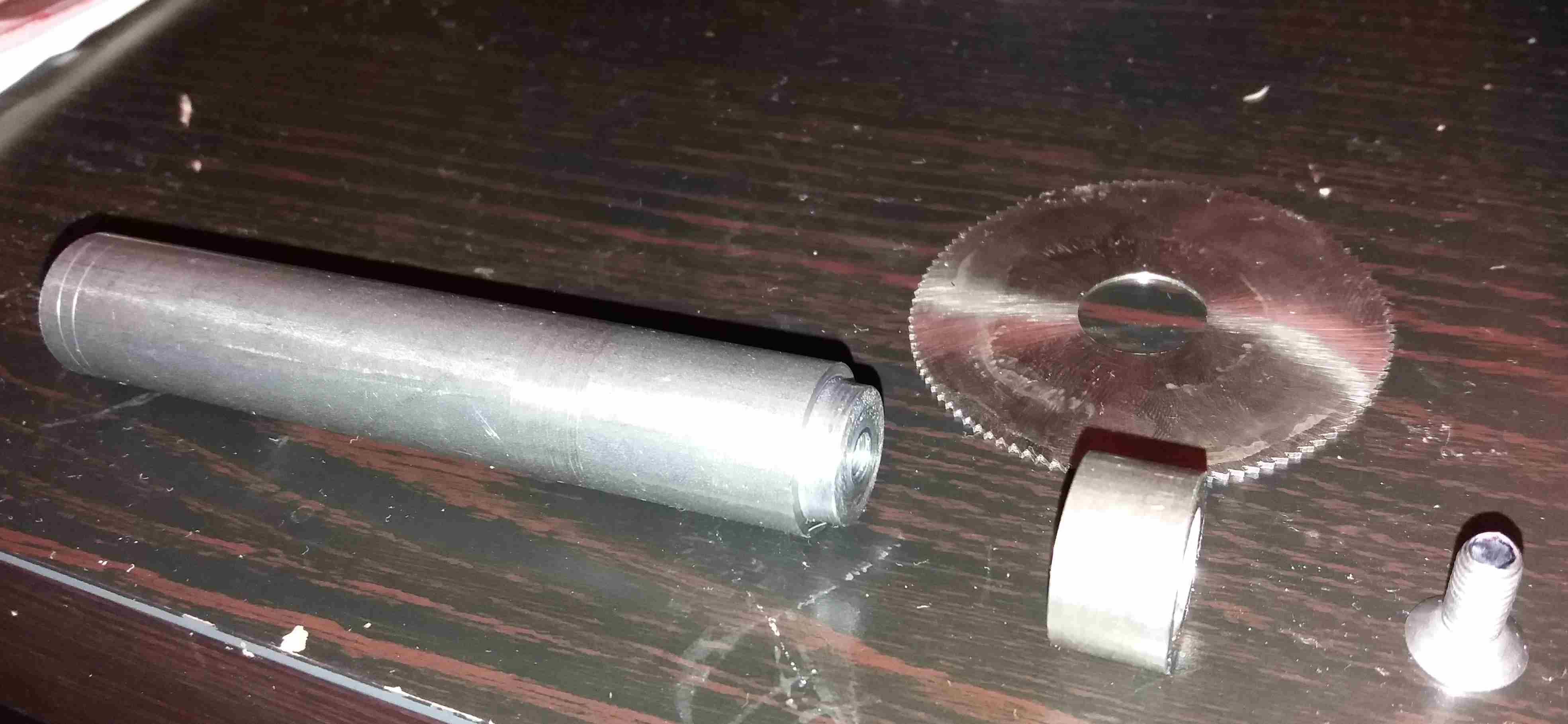 Včera jsem si opravdu zbastlil držák pilky s otvorem 16 mm. Základ je 20 mm ocelová kulatina - koupil jsem jí ještě ve Feroně v Holešovicích.