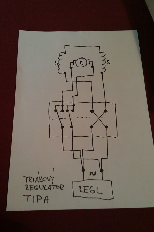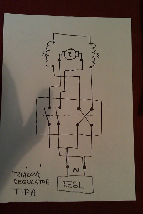 Všude jsem našel jen nějaké obecné schémata zapojení pračkových sériových motorů . Ničeho jsem se nemohl dobrat . Když jsem podle fotky zapojil regulátor tipa ,tak jsem odpálil regl . Nelze náhodou měnit směr chodu motoru pouze ve stejnosměrném režimu ? Můžete prosím najít chybu v zapojení ?