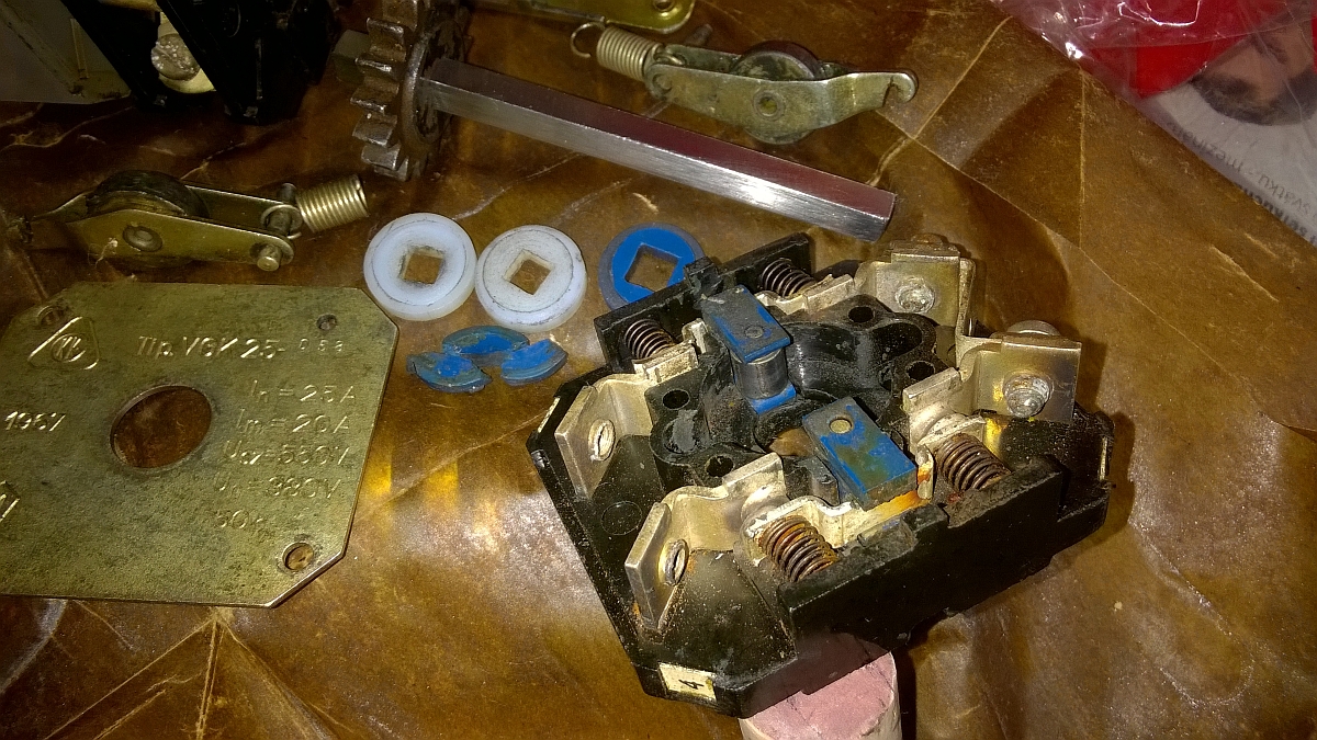 Tak spínače, nebo přepinače VGK25, VSK15 a pod. se vyznačovaly výdrží, protože byly předimenzované a to jak proudově, tak i konstrukčně a pokud nebyly vystaveny přímým povětrnostním vlivům, tak vydržely bez nějaké velké ůdržby léta. ! Jednou jsem ze čtyř VSK15 skládal reverzační přepinač na malý soustruh a to ještě na dvojí obrátky - 1400 - 2800 ot/min a věřím, že šlape dodnes.