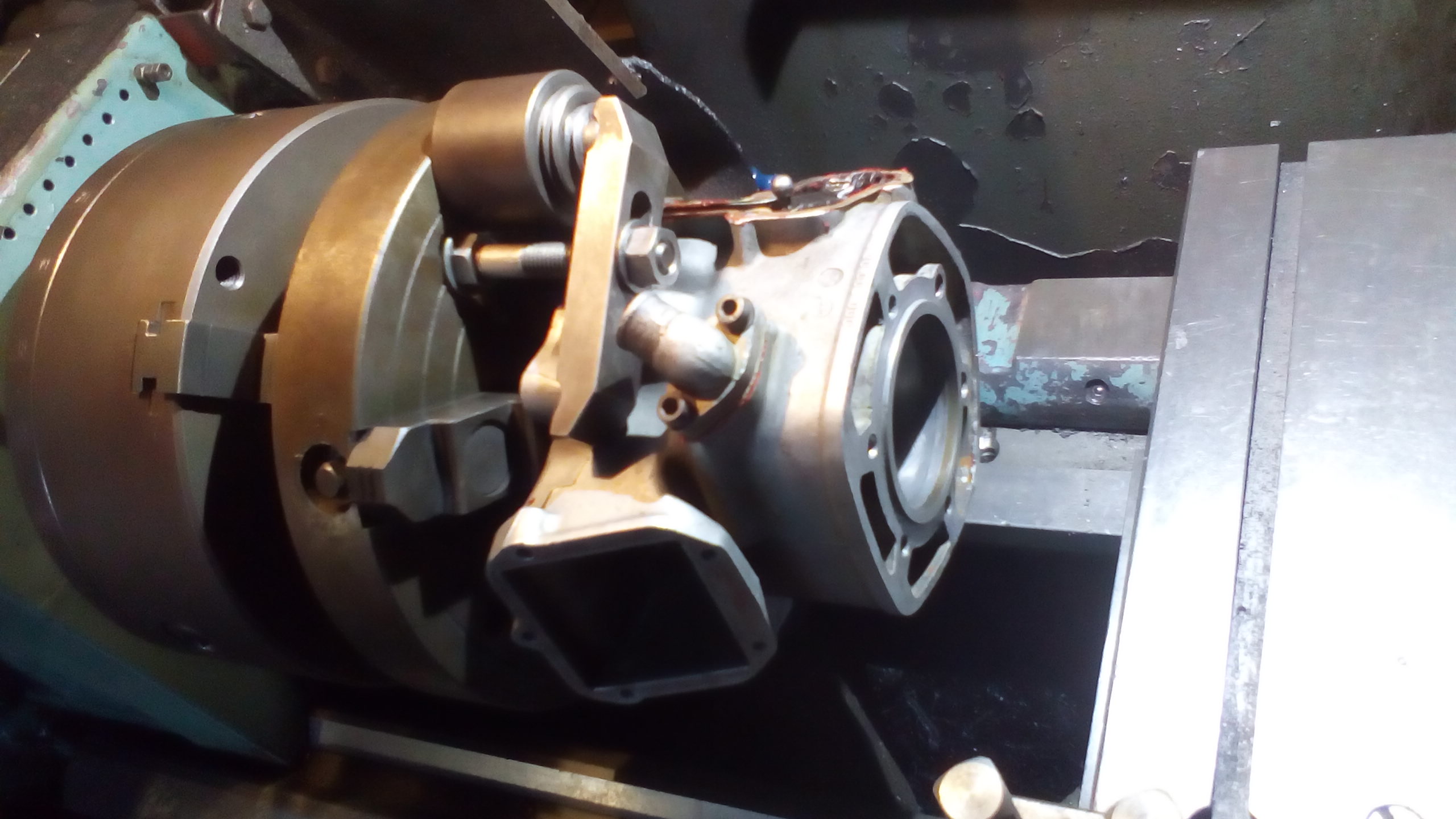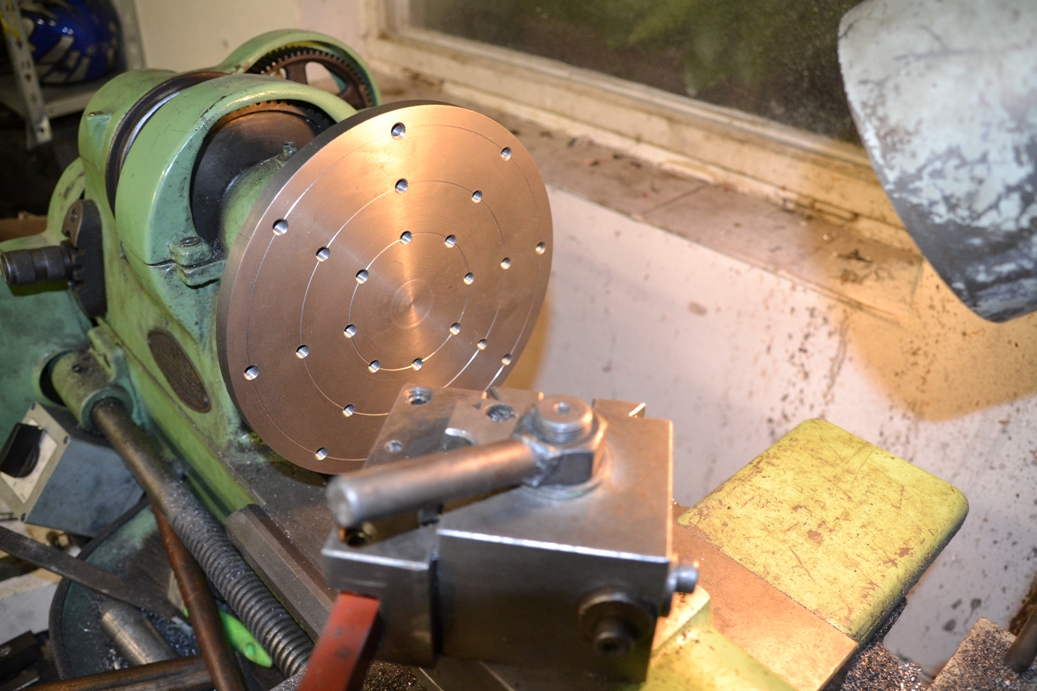 Jsou tu pořád samý profi výrobky, tak dám po dlouhé době jeden pořádnej bastl. Lícní deska na mýho dědouška. Materiál 5kg činka nalisovaná na trnu k naražení přímo do dutiny vřetne. Frézku nemám, jen soustruh a vrtačku, tak klasické drážky nepřipadaly v úvahu. Takto snad poslouží taky.