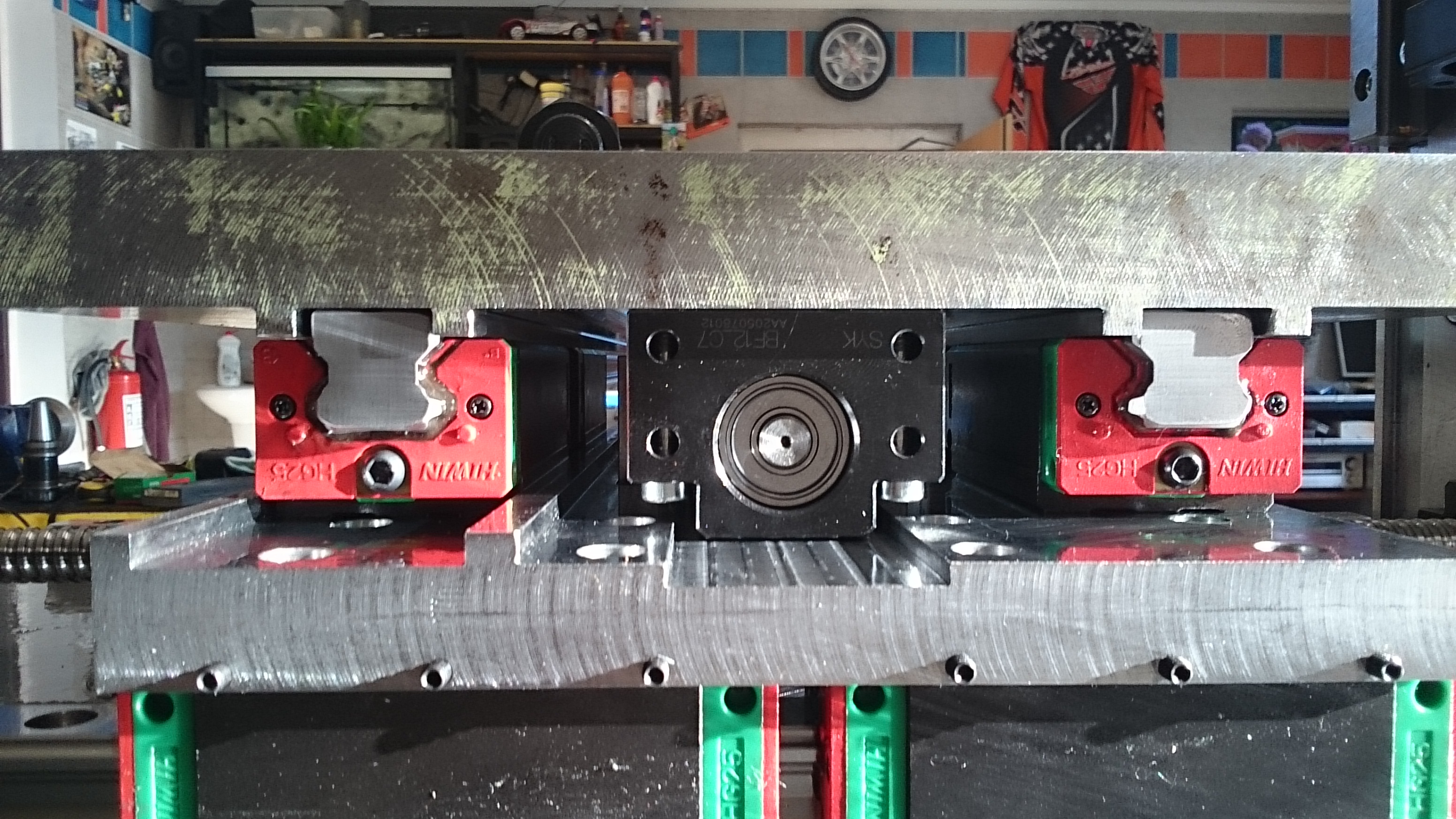 pri 30 kilech na konci stolu to spadne o 0,25mm ,ty voziky nejdou dat vic od sebe ,kvuli sroubum spodnich voziku,na druhy strane u voziku se to hne do 0,01