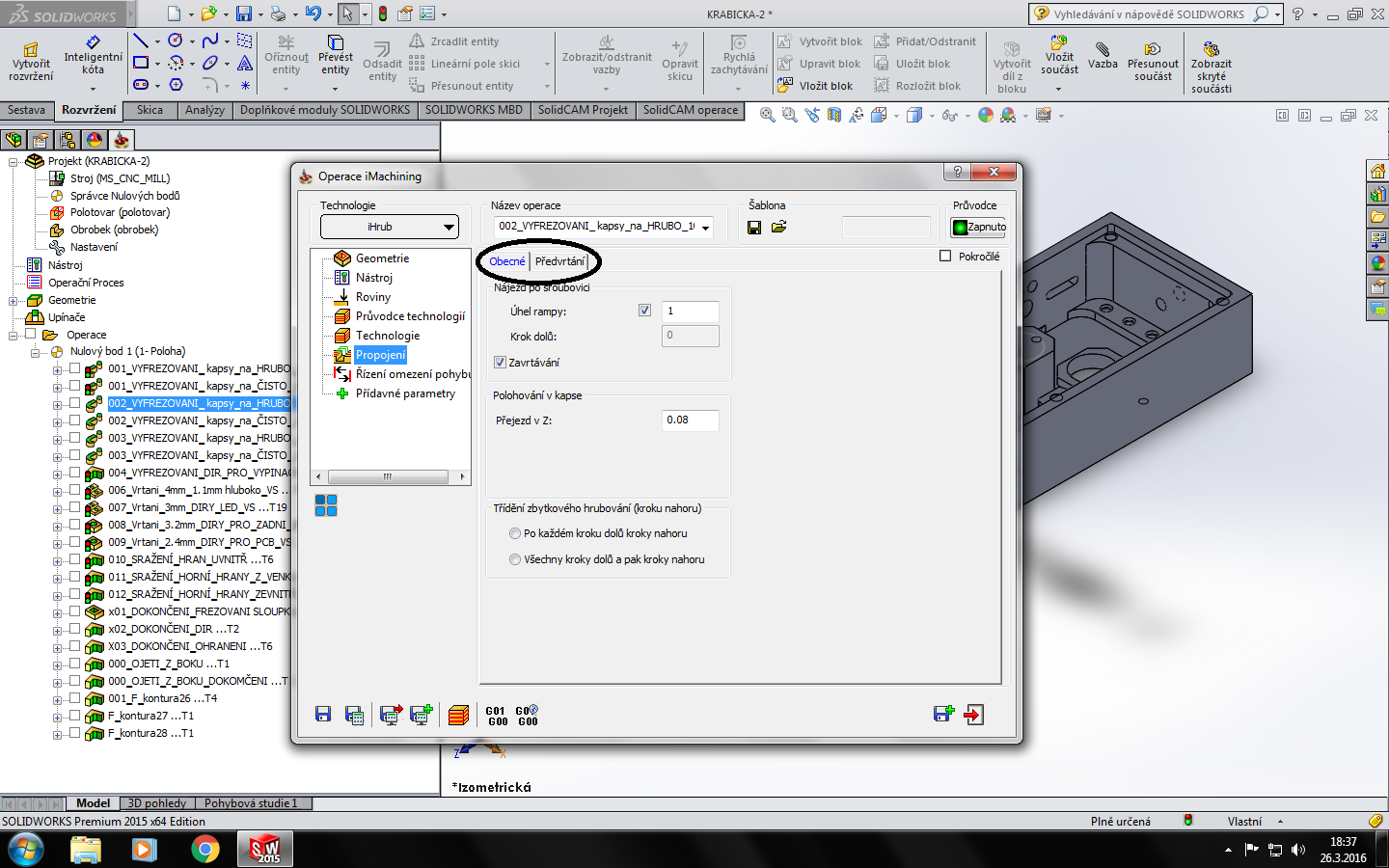 Teď me napadlo. V imechninigu je přimo moznost misto zafrézováváni použít předvrtani. Tim padem nepotřebuješ predchozi operaci k navrtani diry že?