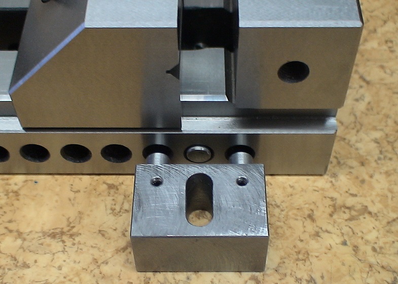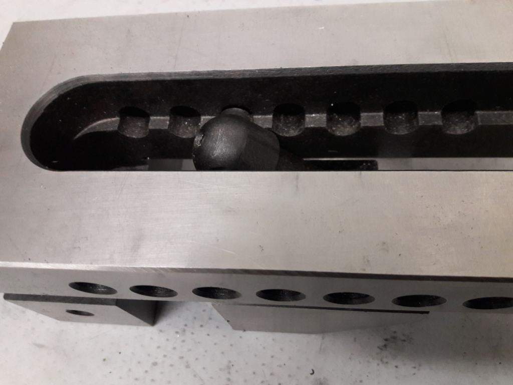 Jde mi o to, že pokud jednou svěrák vyůhluju a potřebuju změnit jeho rozsah rozevření přemístěním příčnýho čepu, tak musím zcela demontovat kostky s trny. Pokud do čepu vyříznu v ose závit pro "vytahovací" šroub cca M4, tak snad bude stačit demontovat jen jednu kostku a čep vytáhnout pomocí šroubu na stranu demontovaný kostky. Jinak by se musel po každým přesunutí čepu svěrák znova úhlovat. Taky asi zkrátím příčnej čep aby se trny kostky daly nasadit i do díry s čepem. Díry pro příčnej čep mají dýlku 35 mm, tak jestli bude čep jen v 25 mm je asi šuma fuk.