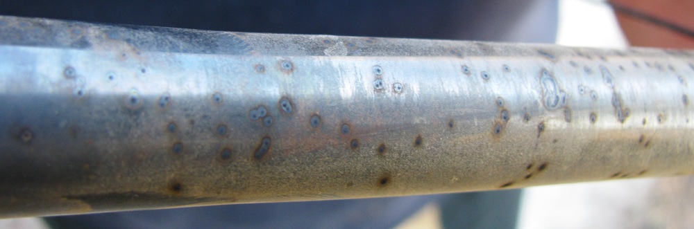 Tak mám zase jeden příspěvek do fotogalerie materiálů z číny. Byl jsem zase zkusit štěstí u prodejce materiálů, jestli se něco změnilo, třeba k lepšímu. A bylo to ještě horší než před půl rokem. Vzal jsem zase jen vzorky válcované kulatiny 15 142 a 15 230 - 10mm tlusté. Už to ani nevybrušuji a nezalešťuji, a nezkoumám to pod mikroskopem. Je to moc práce a ztráta času. Přišel jsem na jednodušší a rychlejší metodu zkoušky materiálu. To si může zkusit úplně každý a nic to nestojí a je to za pár minut hotové!!! Stačí zkoušený materiál jen přebrousit(nasucho), aby se odstranily nečistoty a mastnota. Pak se materiál namočí do vody. Celkem hned to začne reagovat a začínají se objevovat mapy rzi a po 10-20 minutách, jak voda vyschne se objeví ta hrůza co je dole na fotce. Všichni prodejci říkají, že materiály které prodávají jsou výborné a nikdo si nestěžuje. A ti kteří z těchto materiálů vyrábí, tak říkají, že jim výrobky praskají a vracejí se.