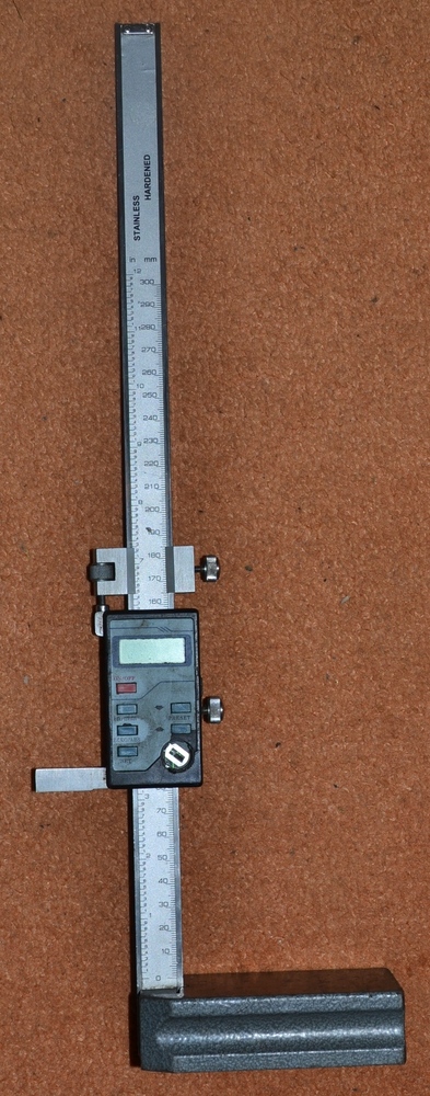 Výškoměr digitální 300mm; bez jehly, třmenu a víčka baterie, jinak ok. 1800Kč