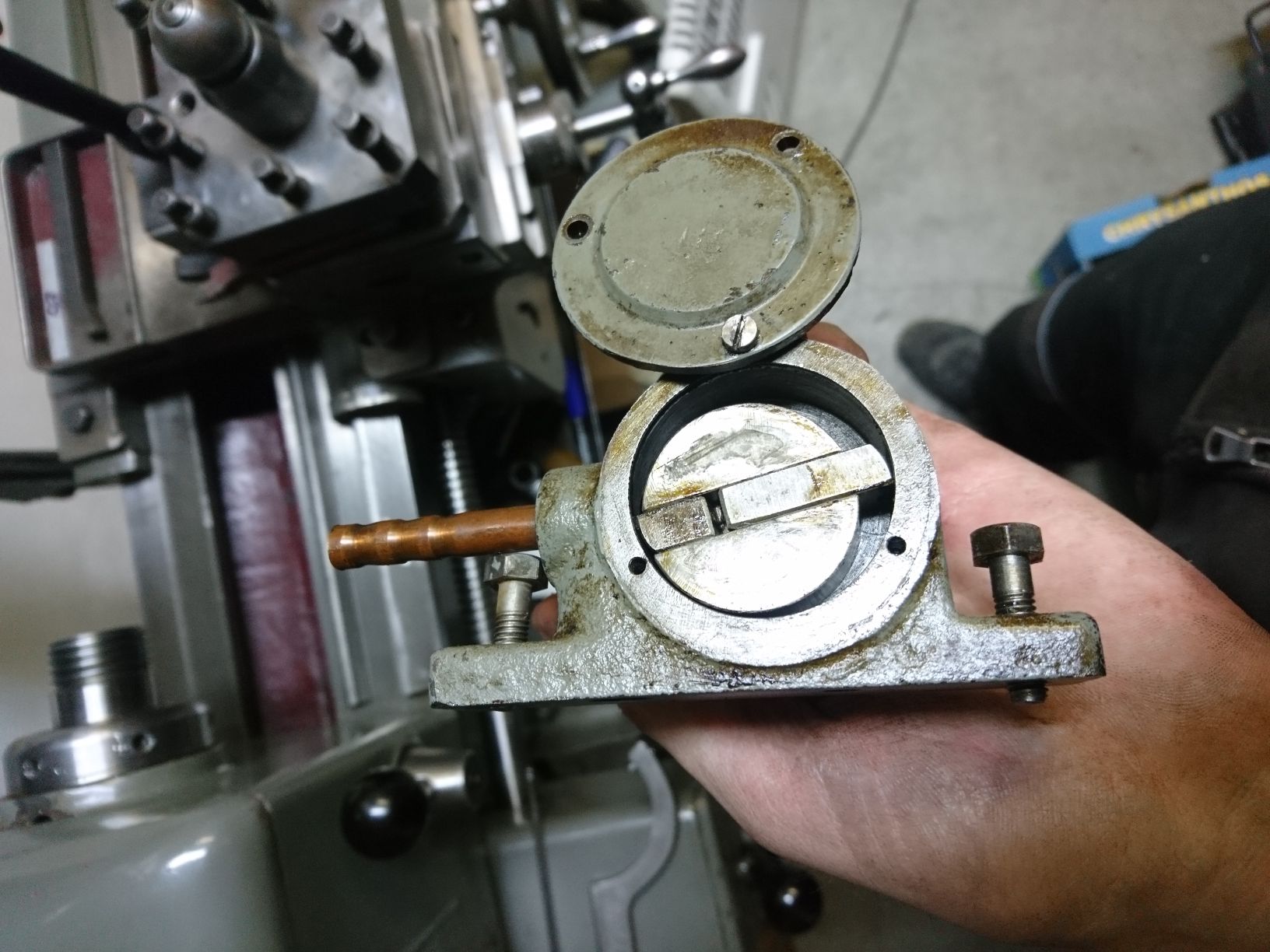 No, vypadá to spíš jako domeček pro ložisko :-) Co se týče tlaku tak vůbec netuším, ještě jsem na soustruhu prakticky nedělal. V zimě jsem ho přivezl a furt na něm makám. Vřeteno má za sebou opravu (přebrus a zaškrabání pouzder). Poslední co mi teď chybí je ozubené kolo a hřídelka na příčný posuv (ty to zabalili nejspíš při nějakém nárazu). Pak už snad konečně začnu něco kutit.