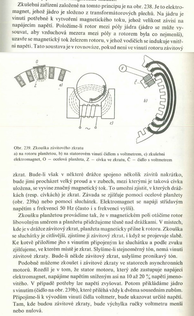 Toto meranie s "V" trafom je náhodou veľmi rozumné, aj keď o tom počujem prvý raz. Ak je cievka skratovaná, začne sa v nej indukovať prúd, ten vytvorí magnetické pole, ktoré sa dá zistiť napríklad priložením čepele z noža. Ak by boli vinutia v poriadku, tak nemá prečo vzniknúť magnetické pole na vrchu rotora, ako je to na tej fotke.elbarto píše: ↑24. 9. 2021, 7:29 ... prostě měření "na Ukrajince". Změr si izolační odpor nějakým VN měřítkem, krok 1. Potom měř cívky hrotama přes žárovku, ideálně větším proudem at to měříš pod provozní zátěží, krok 2. Tohle blbnutí vypadá dramaticky, ale je celkem zbytečné. Pokud máš nový stator a stejně to nefunguje, tak to rovnou přemotej, krok 3![]()