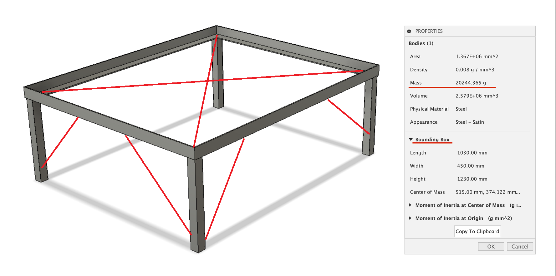 No to je hodně pěkné, stačil by 40x40x4? Nohy ze čtverce 40x40x2 by šly (ten tu mám, kvadratický moment je o 60% vyšší, ale roxor bych vařil jen k 2mm stěně nebo bych musel dělat něco složitějšího), výška má být 600mm (na obrázku je 450)..? Ostatní souhlasí (ten rošt jsem myslel, že udělám hustší a také z úhelníků)?