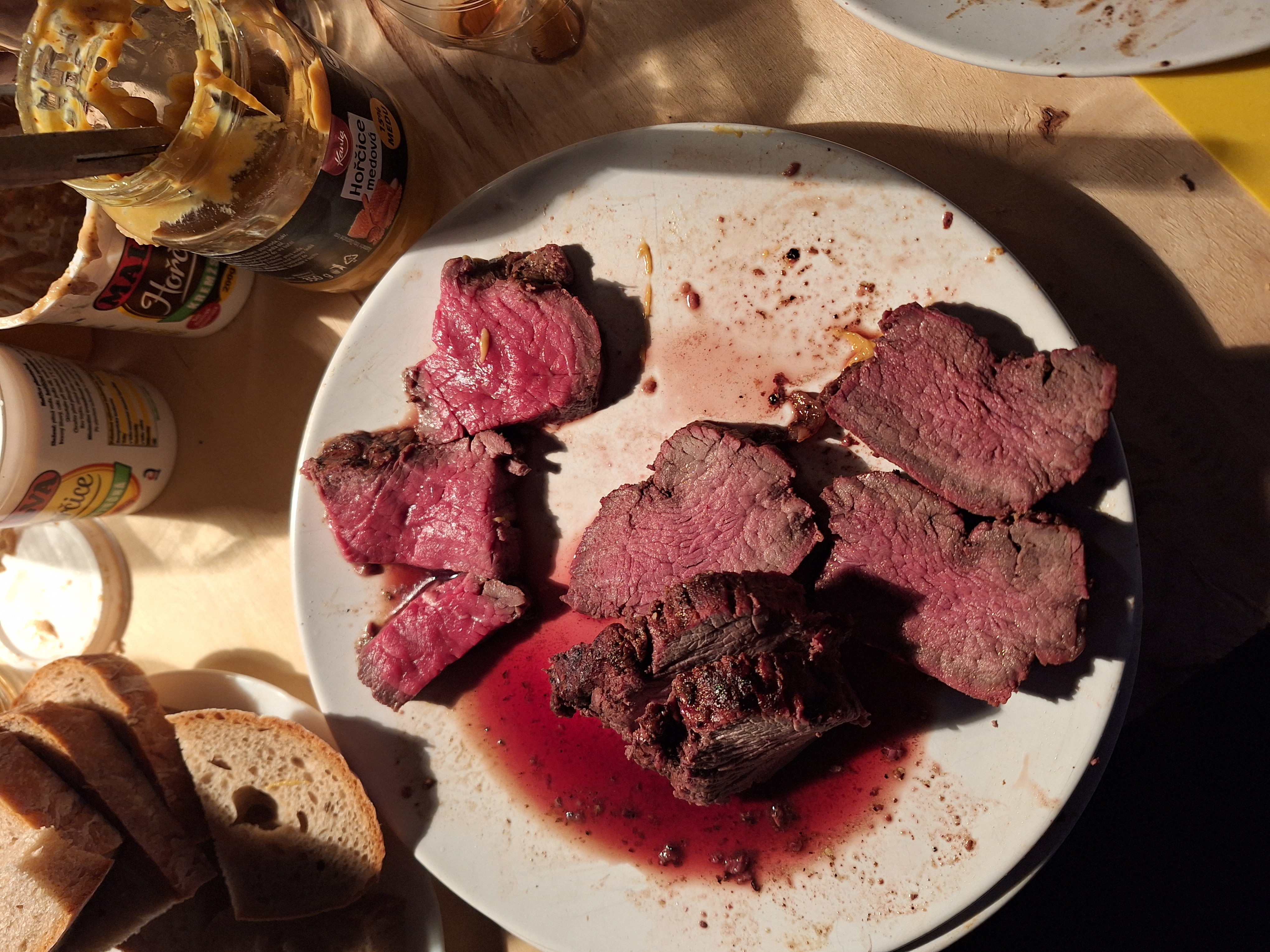 Nakladal jsem to v utery a jen jarni cubulka, cesnek, cerstvy pepr, sul. Zbytek udelala ta krava sama.