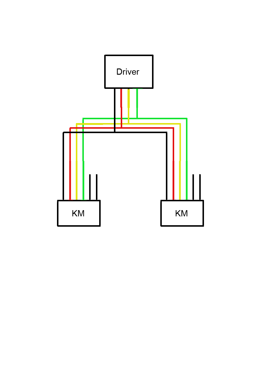 driver cierna na ciernu prveho motora, cervena potom na ciernu druheho motora a cervena z druheno motoru na driver.