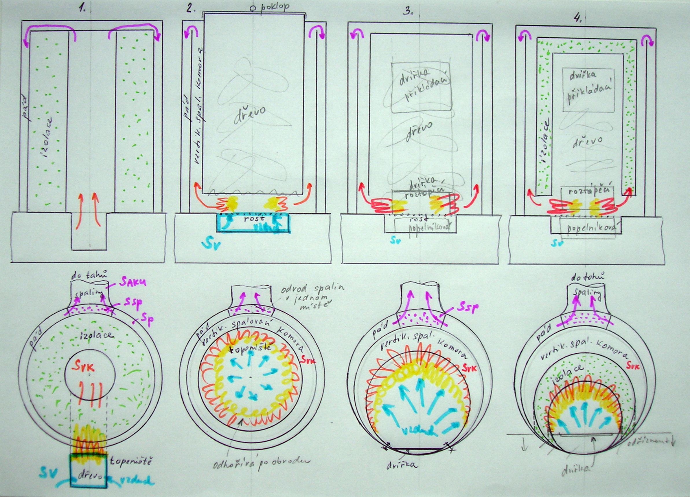 josef.lipka: vertikální spalovací komora by měla být pouze jedna. Když se použijí dvě a více, tak to není stabilní (jedna komora vždy přetáhne tu druhou/ty ostatní) a prý dramaticky klesá účinnost spalování. To už někdo testoval a následně rovnou přestavěl jako nepoužitelné řešení. Tak na to raději pozor.