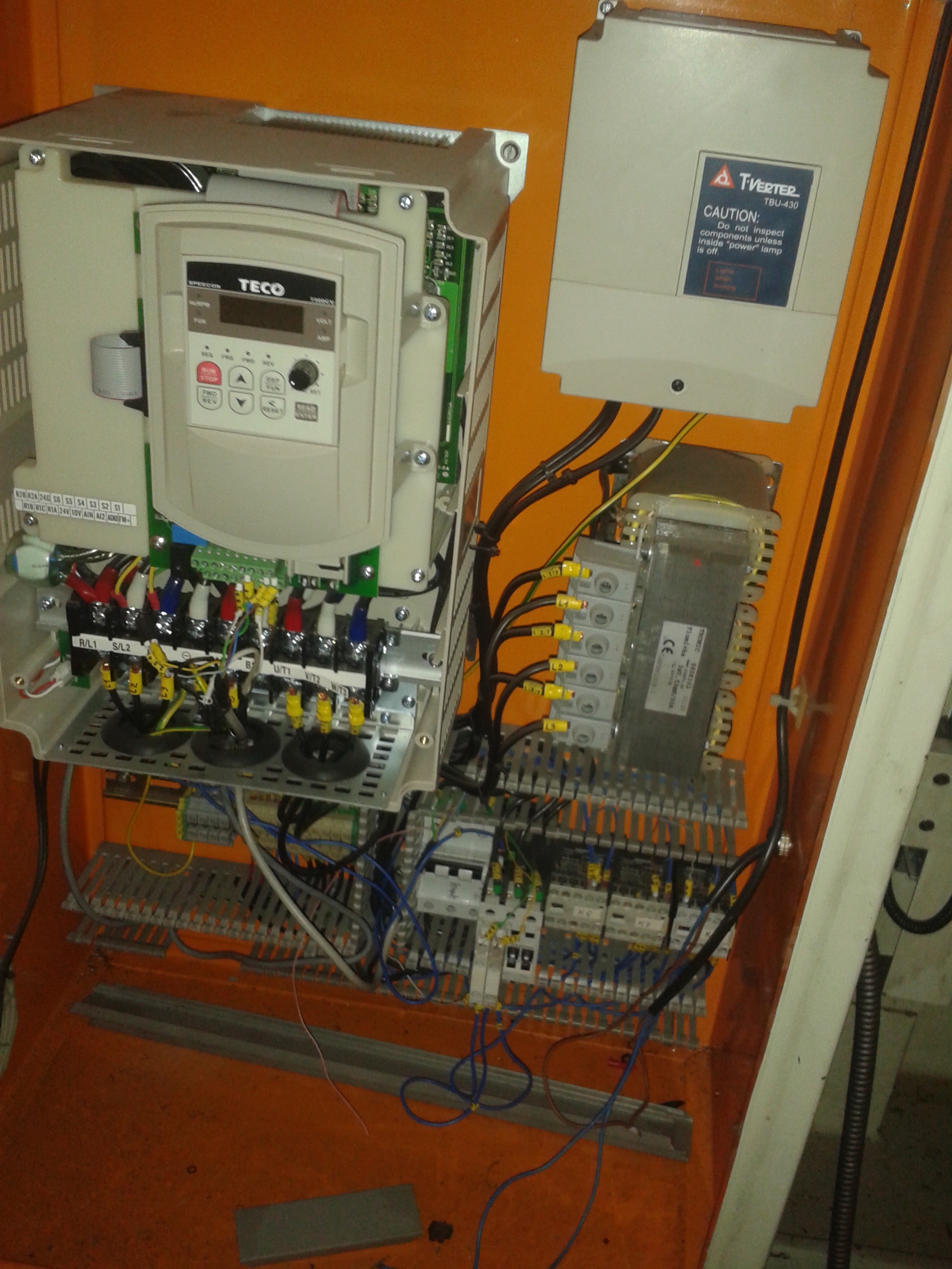 Natáhl jsem pár kabelů a zkusil osu X. Neni zapojeno mazání a limitní spínače tak jsem jen tak trochu jezdil. Jasně že jsem po chvilce naboural a narazil dorazem do řemenice a trochu jí dojebal. Horší bylo vše pak povolit a znova to rozjet. Max rychlost je cca 12m/min ale bežne bude nastaveno asi 5m/min. Musím objednat nějaké kabely a konečně dodělat elektroinstalaci.