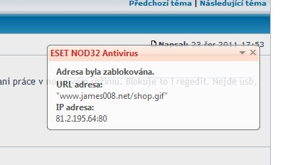 Viry jsou jako trpaslíci, všude vlezou a hrozně se množej :D . Chtěl jsem se podívat, co tomu tvému viru říkají stránky http://www.viry.cz/forum/viewtopic.php?f=13&t=112692 a než jsem se do toho bědování stihnul začíst, můj ESET NOD32 Antivirus se vnutil s touto cedulí: