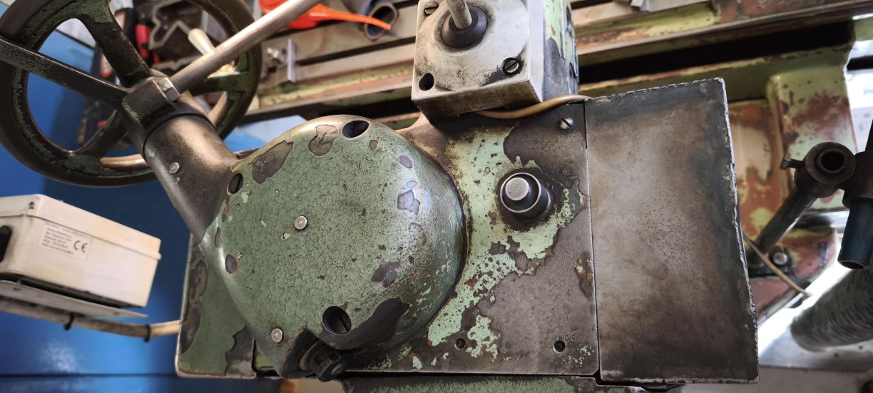 Vřeteník je úplně suchý a je v něm na dně zaschlý bordel. Bruska prý do poslední chvíle výborně fungovala ve výrobě, pak firma skončila, brusku prodali a nový majitel ji nikdy nezapojil a nespustil, takže asi přes rok stála. Předpokládám, že olej vytekl a zaschl.