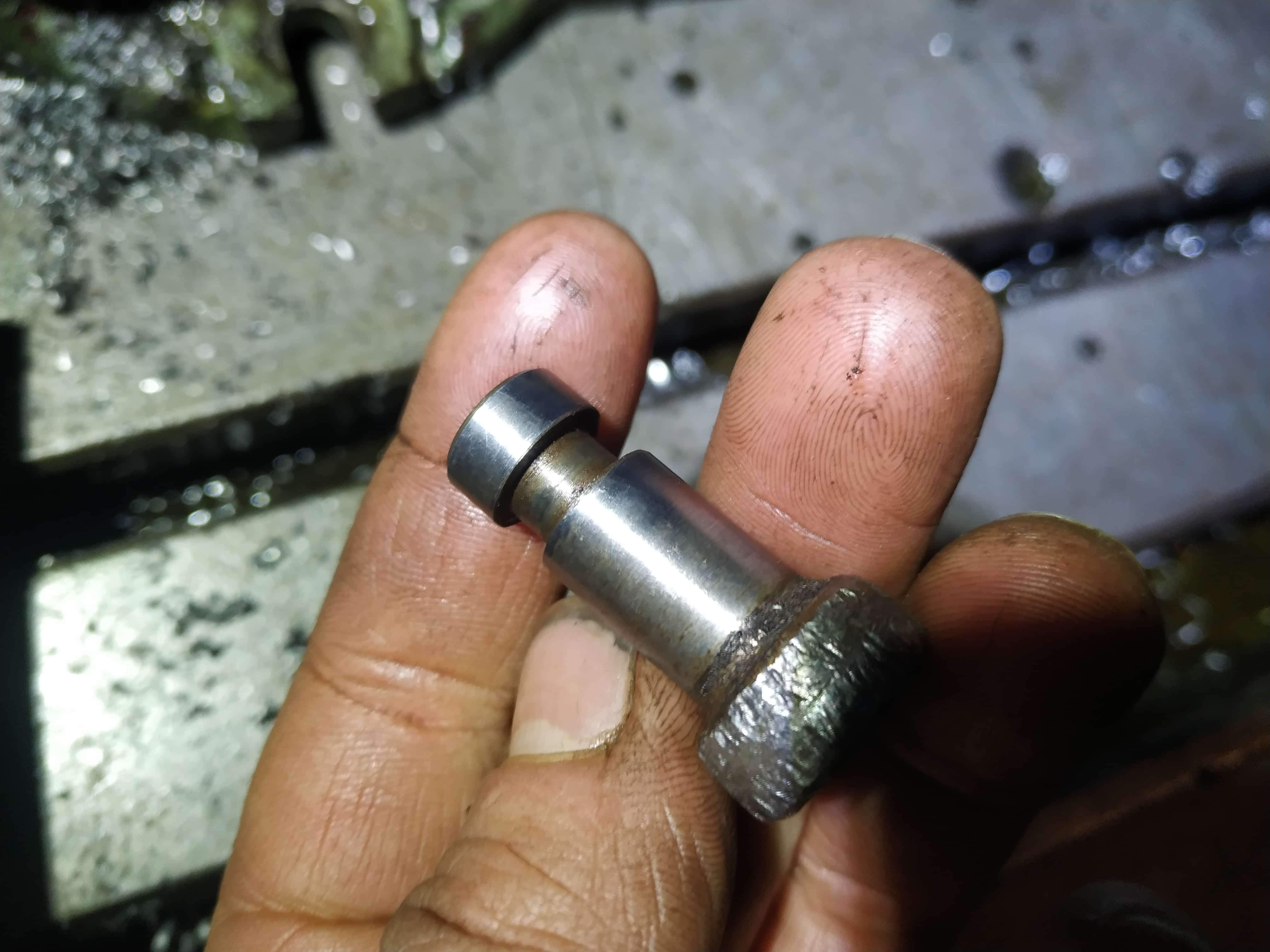 Dnes som sa celý deň trápil s kuzelovym kolikom na tejto páke nešiel ani za boha von. Skúšal som všetko potukat, reverzné kladivo s narezanym závitom, nabidovane reverzné kladivo, z druhej strany som uz so samej zufalosti nabodoval maticu a tlačil tak poistku von a nič. Musel som ju odvrtat.