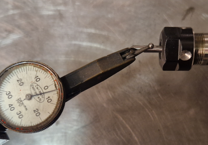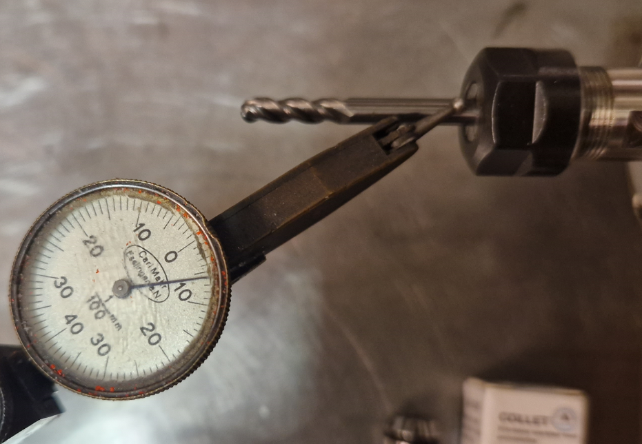 Házivost vnitřního kužele ER11 je do 0,01, ale povrch je tak trochu "okopaný brusičem". Měřeno asi 1 mm od kraje a cca 12 mm od kraje. Příležitostně to asi přebrousím. Házivost s kleštinou 1/8 cca 0,03. Házivost s kleštinou 4mm cca 0,06. Ta kleština byla balená takhle a asi bych ji nedoporučil.