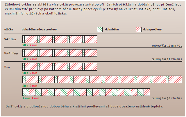 Výrobce doporučuje záběh na 3000 ot po dobu 20 min. To se mi moc nezdá a tak provedu celý záběh s postupným zvyšováním otáček a pauzami dle doporučení výrobce ložisek.