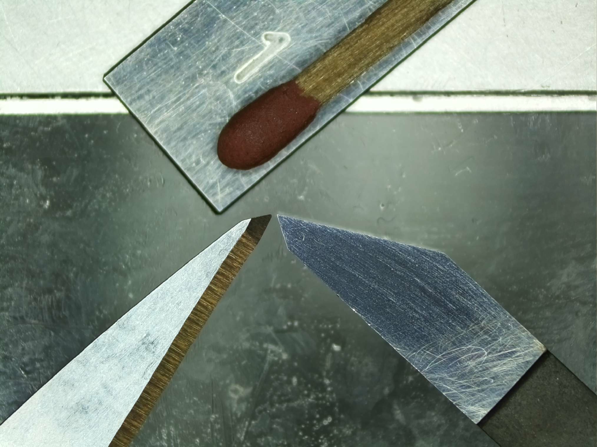 no a ještě porovnání s břitem co je na výměnným skalpelu Swann Morton No.11 (úplně nový, vyndaný z obalu)