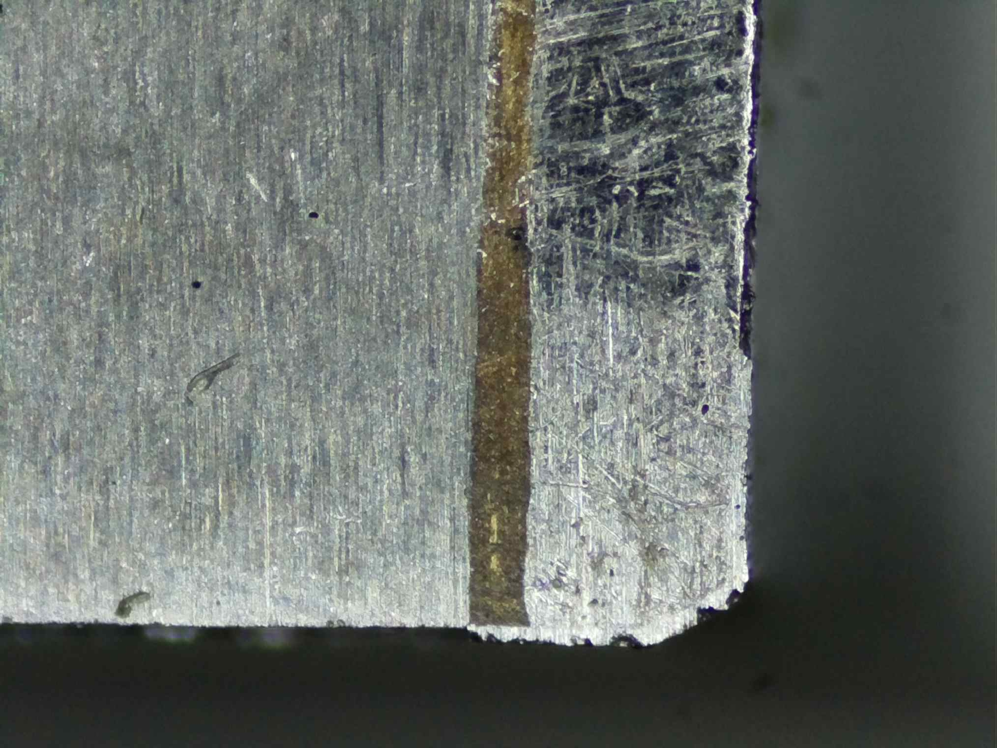 Horní plocha byla (stále je) mírně prohnutá - odhadem tak dva interferenční proužky - opravená je pouze cca polovina - je to i vidět - zbytek je pořád trochu zrytý.