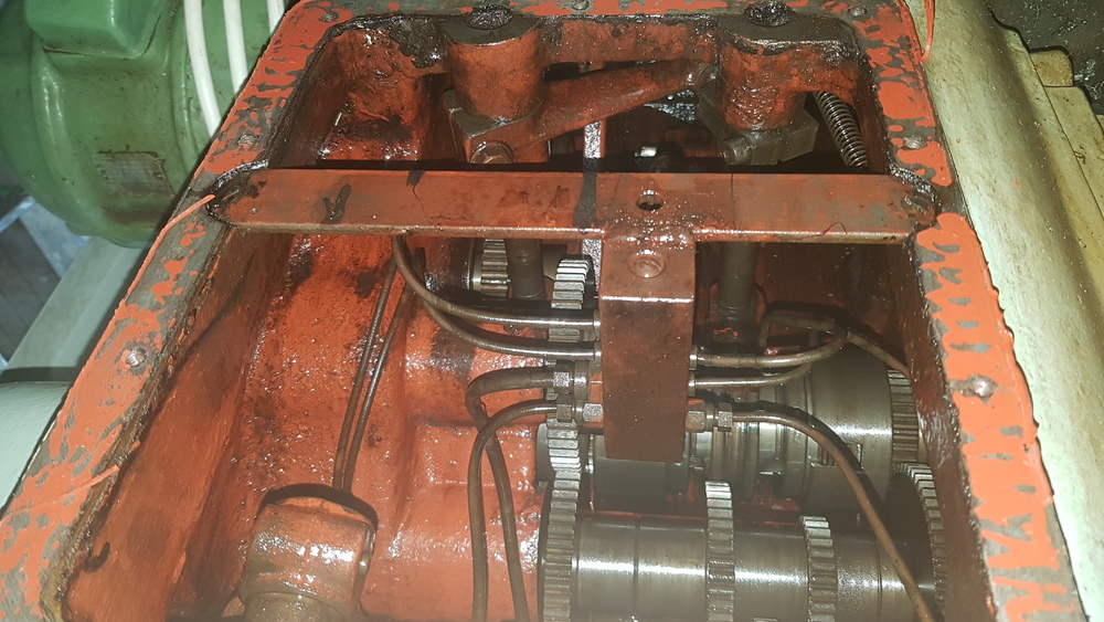 Ty kola nad motorem, to myslíš ty kola kde se mění rozsah otáček vřetena (20 - 1000; 31,5 - 1600; 63 - 3150), nebo kola pro závity? U závitovch kol je do prostoru přivedena měděná trubička, kterou si nasměruješ tak aby olej tekl na kola. U těch kol níže to bude podobné.