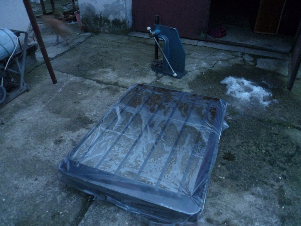 Dnes jsem si udělal výlet k Olomouci. Přivezl jsem si litinovou desku a přidali mi i lis. Deska má pracovní plochu 1080 x 780mm, tloušťku 120mm a hmotnost něco kolem 700kg. Myslím, že to bude dobrý základ pro CNC na železné kovy. To je ale hudba daleké budoucnosti. Ale zjistil jsem, že pokud člověk nechvátá a vyčkává na dobré nabídky, tak se dá nakoupit i docela levně. Už mám i nějaké lineáry (THK 32mm) a kuličkové šrouby (průměr 28mm).