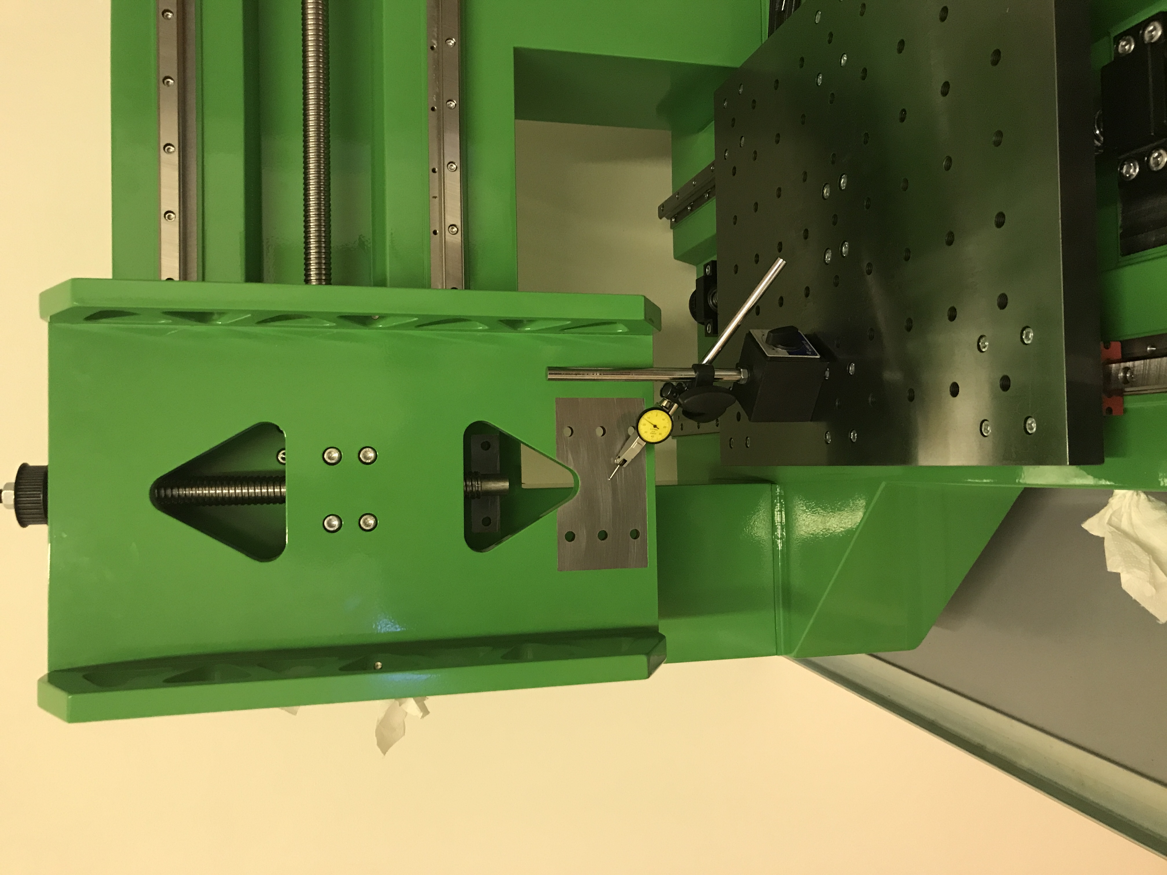 V této poloze, když oběma rukama rázem vší silou zatlačím - nevím asi 50kg způsobím výchylku 0.05 na každou stranu a ručička se v krajních polohách X vrátí do nuly(méně než setinu) a v prostřed zůstane chyba X lehce přes 0.01mm.
