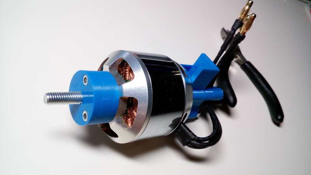 Neměl jsem po ruce vhodný tzv. zadní unašeč k BLDC motoru, tak jsem ho vyrobil z obyčejného šroubu M6 x 20 a filamentu PLA. Není to sice ani vyvážený, ani vystředěný, ale pro změření účinnosti určené vrtule je to naprosto vyhovující. Po spuštění motoru bez vrtule jsem ani nezjistil nějaké vybrace. Samotné měření trvá jen několik vteřin a motor se vytáčí jen na nižší RPM (cca 5 000), a vrtule má stejně asi nízkou účinnost, tak by to unašeč měl vydržet.