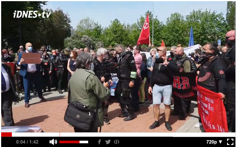 Na Olšanech se sešlo víc než sto lidí, poklonili se, zařečnili si, roušky si sundávali, zřejmě aby si, po slovanském způsobu, hubany mohli dát. Proslýchá se, že policie jim mezi tím seřídila zapalování a dofoukla gumy (ale to je jistě jen fake).