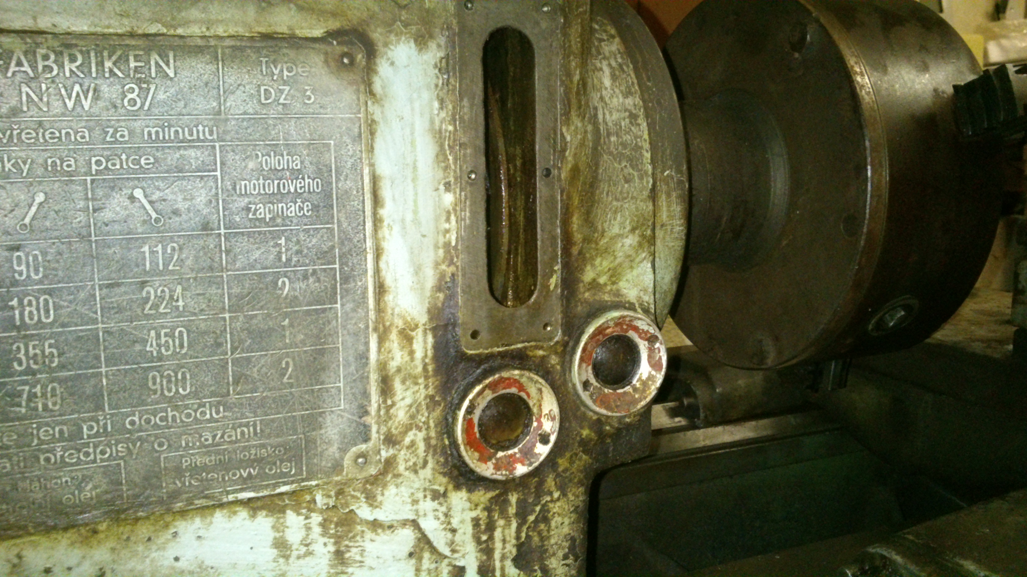 Díky za reakce. Dneska proběhla hrubá očista lože a suportu od všelijakých nanosu. Na suportu jsem našel zátku s nápisem OIL. Netušil jsem ze do suportu přijde olej, dole jsem našel i kontrolní průzor na množství oleje. Těch průzorů jsem na celém stroji našel zatím 4 kusy. 1 průzor byl dokonce rozbitý