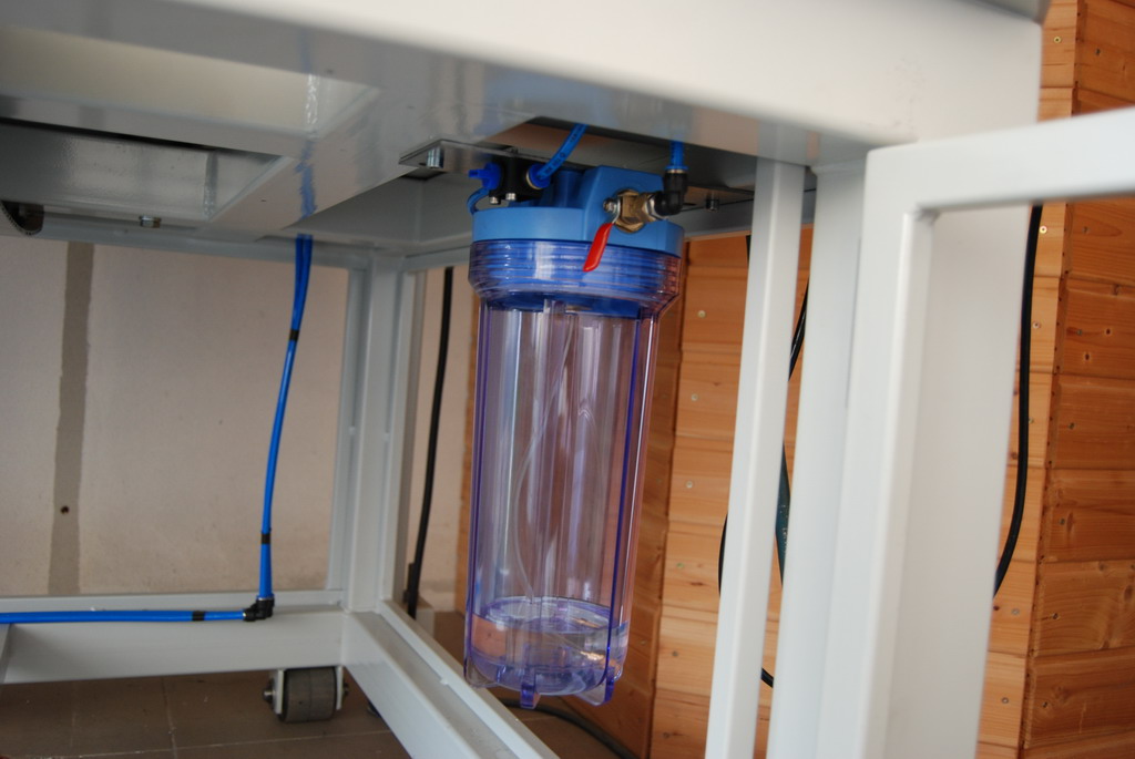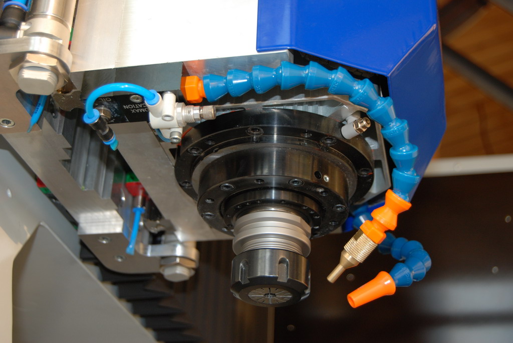 Ještě předělávám systém chlazení lihem. Dole v podstavci je nádobka na líh, která je natlakovaná na 0.5 Bar. V rozvaděči jsem měl ventil FESTO, který spínal líh. Přestože jsem použil pro ovládání ventilu externí přívod vzduchu, tak to zkrátka nefungovalo dobře. Ventil trochu propouštěl. Takže při provozu se do lihu dostávaly malé bublinky vzduchu a naopak při vypnutí stroje začal líh pomalu stékat dolů. Takže při dalším puštění trvalo dlouho než zase líh doběhl až k vřetenu. Ventil jsem vyhodil a přímo k vřetenu jsem dal miniaturní ventil určený na kerosin k modelářské turbíně (ležel mi tady v šuplíku) - teď to spíná parádně - líh nestéká. Další oříšek je škrcení lihu. Vyzkoušel jsem všechny možná škrtítka od FESTA, SMC atd, dokonce i jehlu z karburátoru RC motoru. Všechno špatně. Chvilku to funguje a pak se to změní - většinou si to ubere - pravděpodobně ochlazením. Všechna tato škrtítka jsou dělaná na principu kuželové jehly. A asi nejsou stavěná na takhle malej průtok - opravdu to jenom kape. Jediný spolehlivý řešení se nakonec ukázalo prachobyčejné uškrcení hadičky, což funguje spolehlivě. Ale je to taková "amatérština". Kdyby někdo měl nápad jak jinak škrtit budu rád.